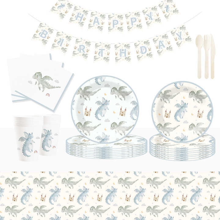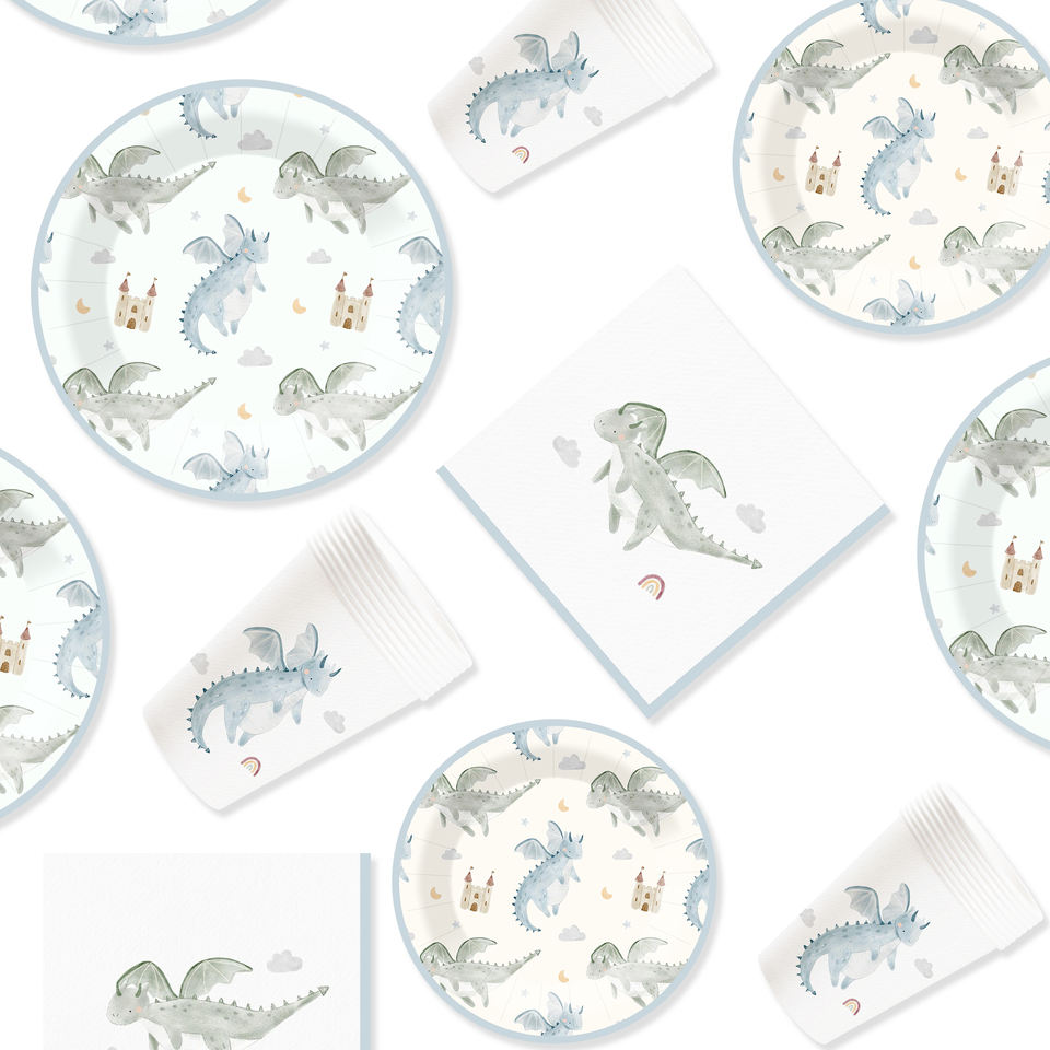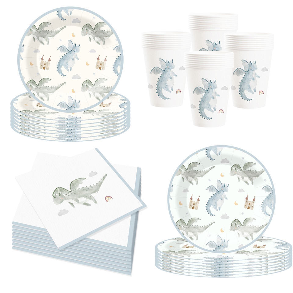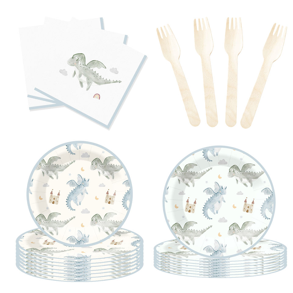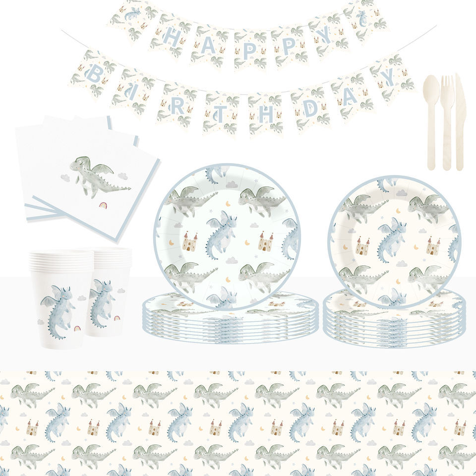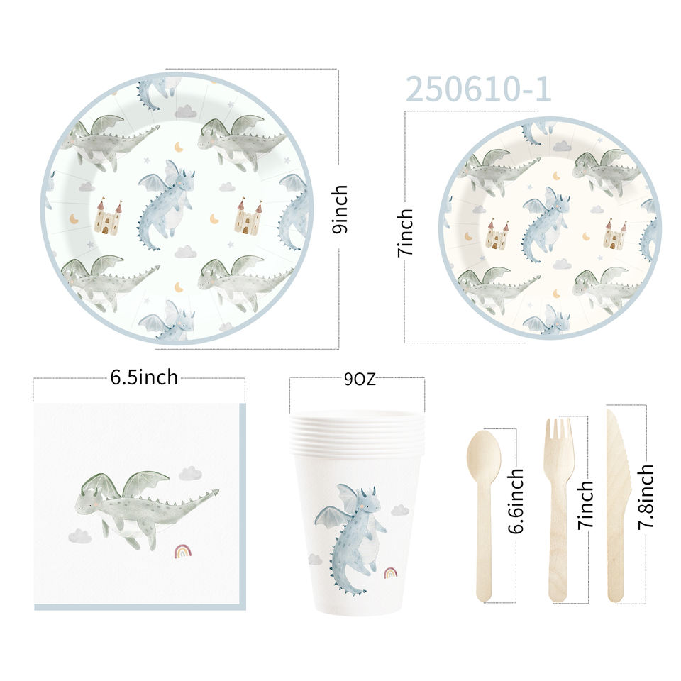 DAMAI Nuevo Juego de Vajilla Desechable con Diseño de Dinosaurios, Platos, Vasos y Servilletas de Papel para Fiestas