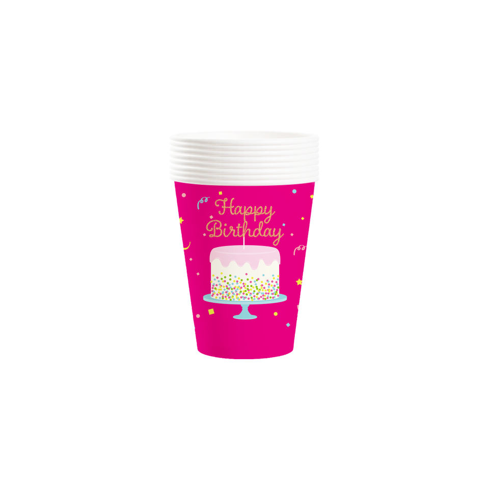 DAMAI - Juego de Platos, Vasos y Servilletas Desechables de Papel con Diseño de Ondas Rosas y Encaje Dorado para Fiesta de Cumpleaños