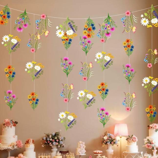 Guirnaldas de Flores Silvestres de PVC DAMAI, Decoraciones Colgantes para Fiestas, Guirnaldas de Flores de Papel para Decoración de Fondo para Celebraciones Festivas