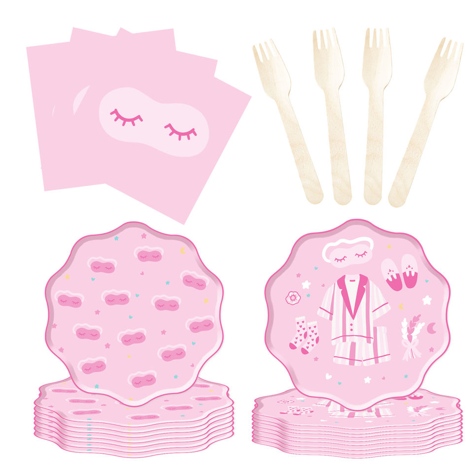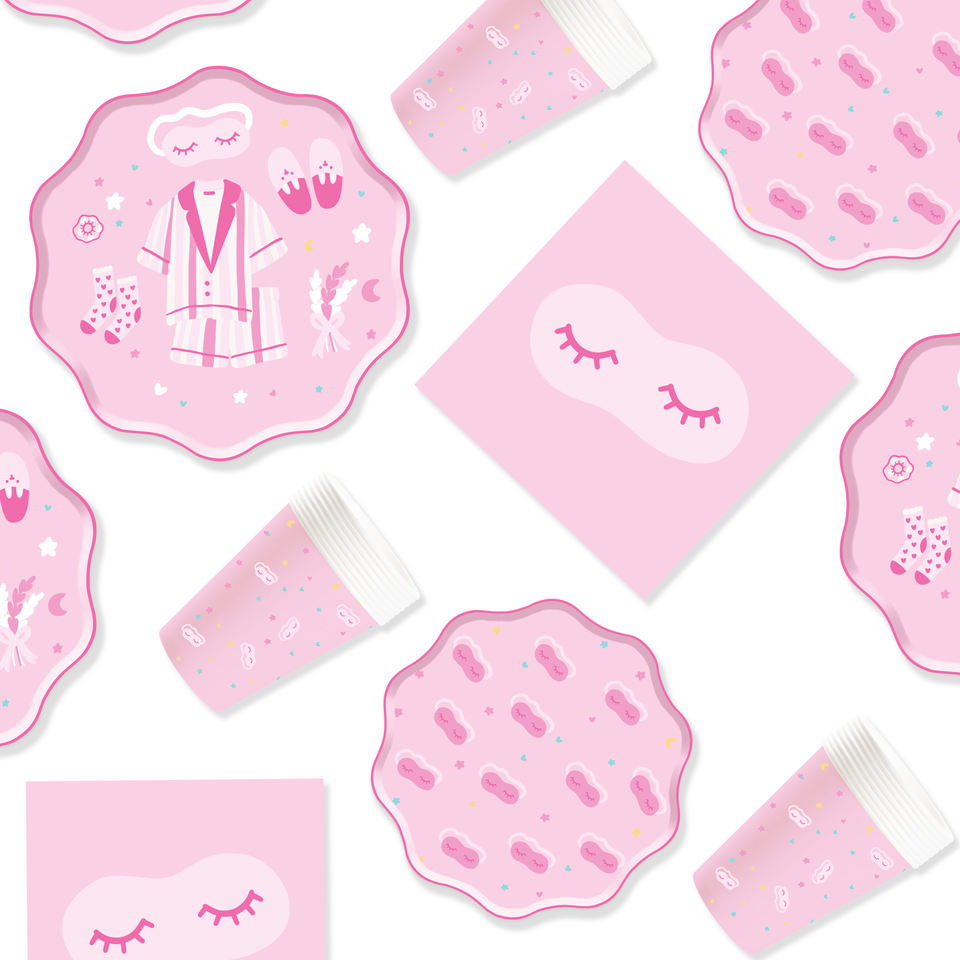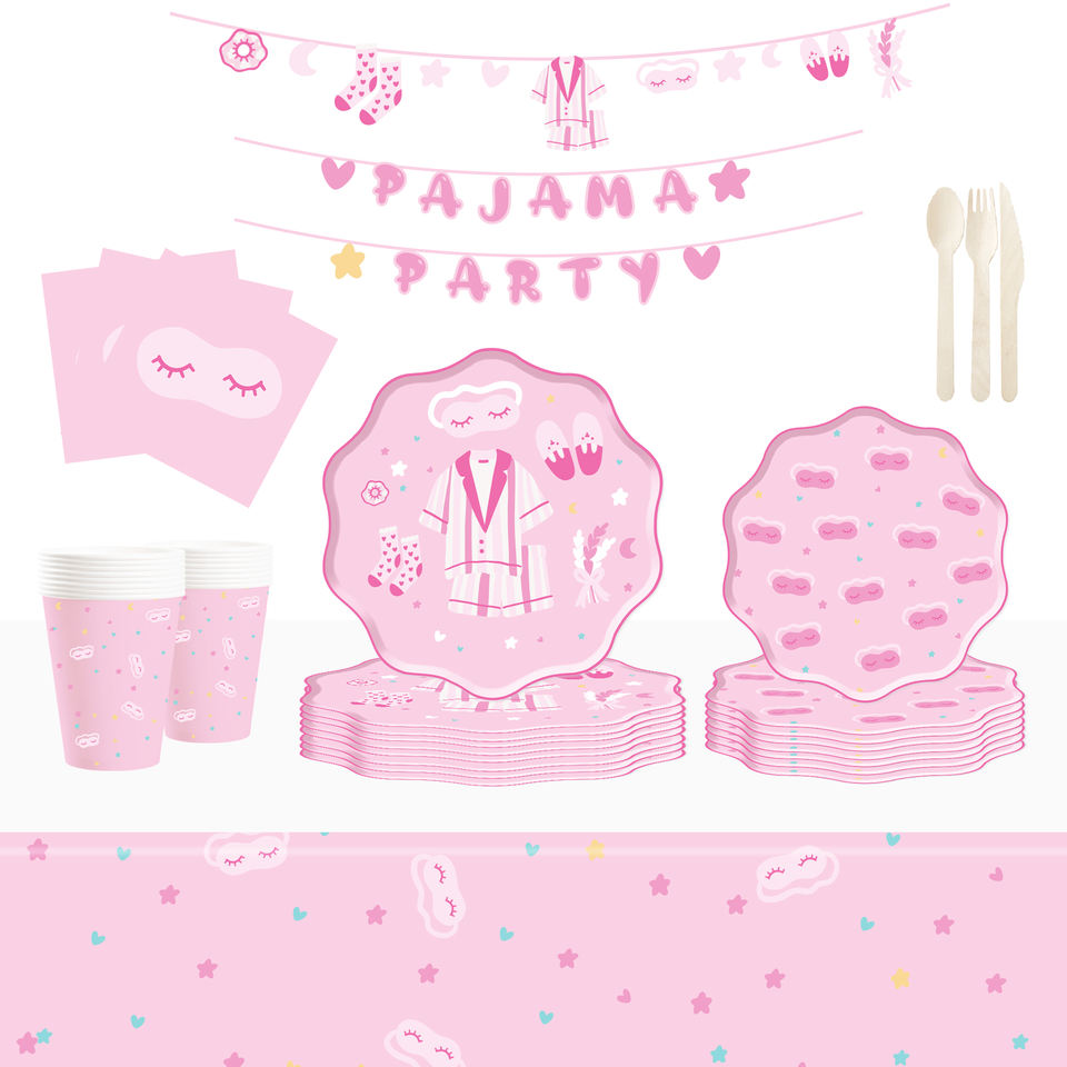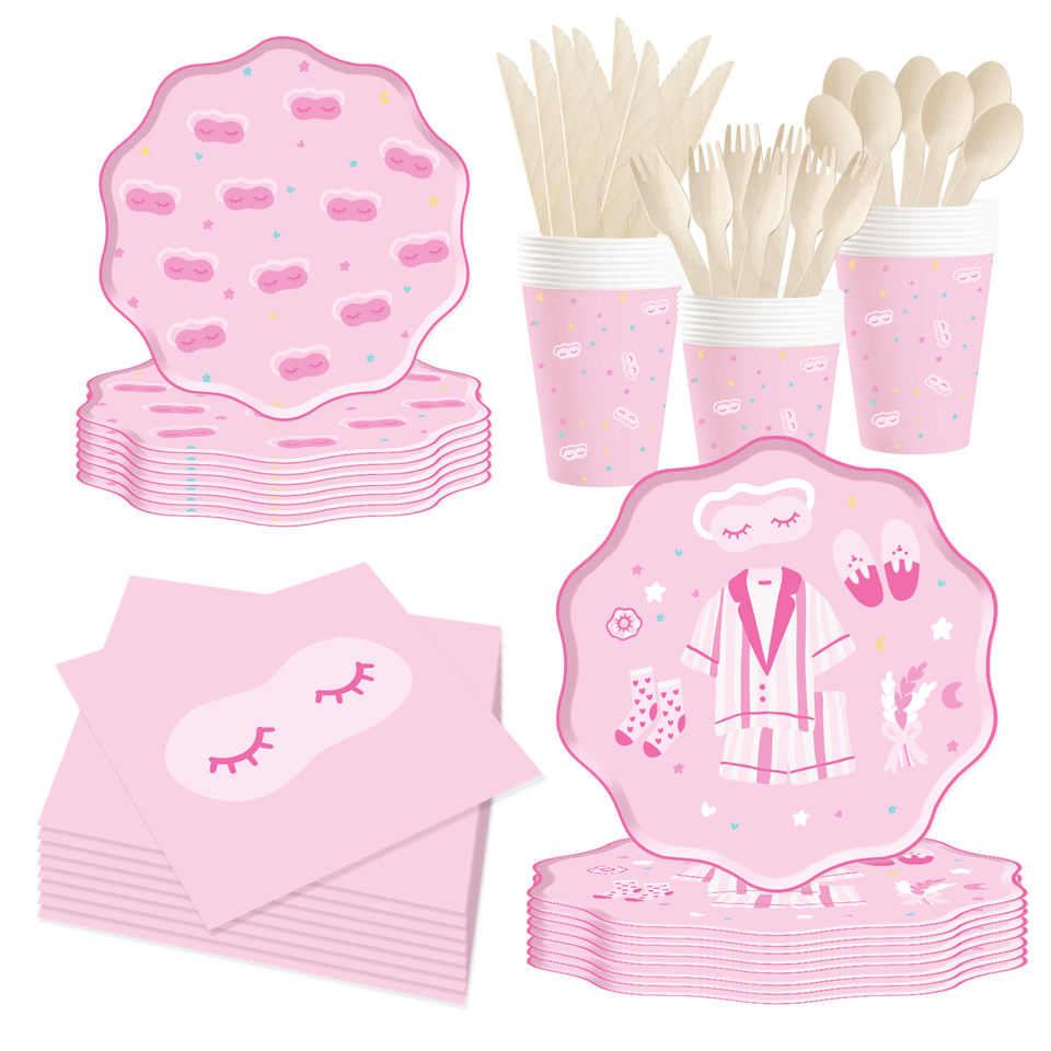 Juego de Platos y Servilletas de Papel para Fiesta de Pijamas DAMAI, Artículos para Fiesta de Pijamas, Vajilla para Fiesta de Pijamas Rosas para Niñas, Sirve para 8 Personas