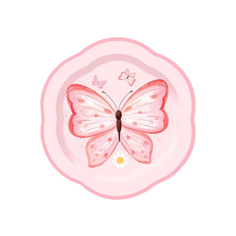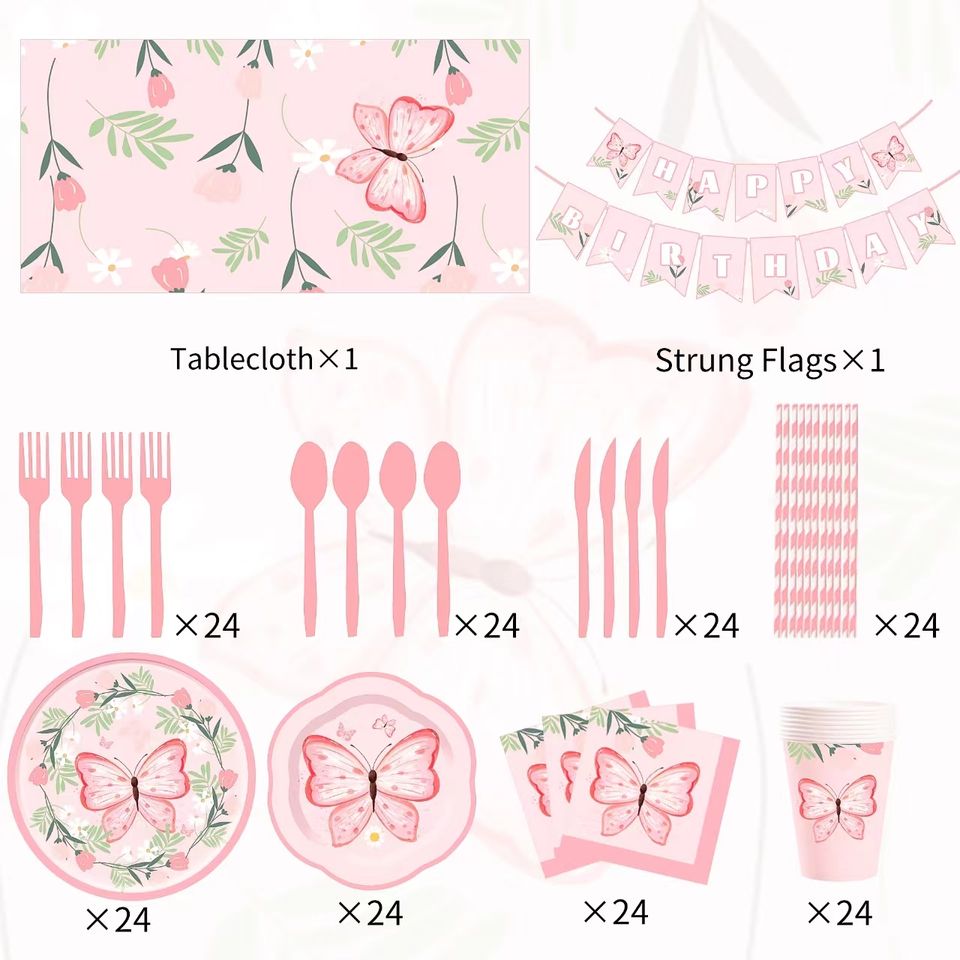 Vajilla para Fiestas DAMAI, Juego de Platos, Vasos y Servilletas de Papel con Diseño de Mariposa Rosa y Flores Giratorias