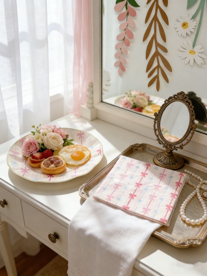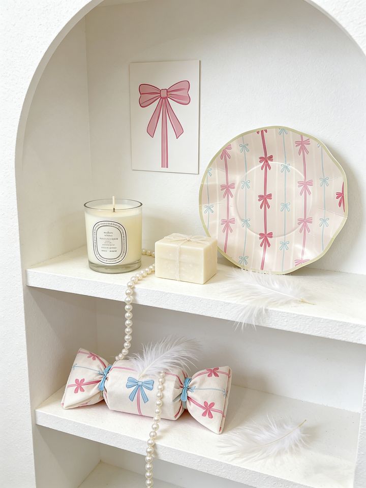 Juego de Vajilla Desechable DAMAI con Lazo Rosa, Platos, Vasos de Papel y Servilletas con Temática de San Valentín para 8 Personas, Decoraciones para Fiestas de Boda