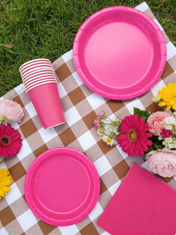 Vajilla Desechable de Color Liso DAMAI, Artículos para Fiestas de Color Rosa Intenso, Decoración de Mesa Sólida Desechable para Eventos de Cumpleaños, Servilletas y Vasos de Papel