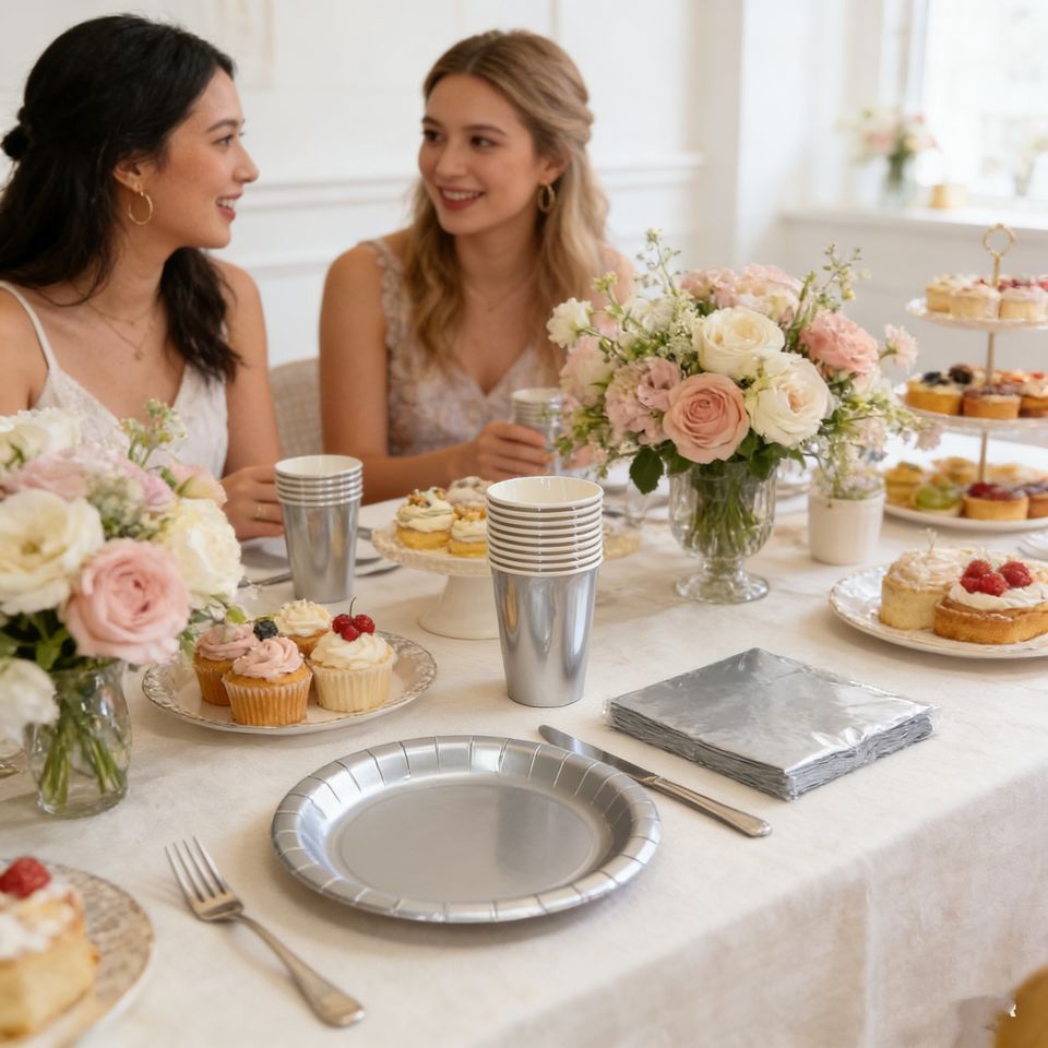 Vajilla Desechable de Color Liso DAMAI, Artículos para Fiestas, Decoración de Mesa Sólida Desechable para Eventos de Cumpleaños, Servilletas y Vasos de Papel Plateado