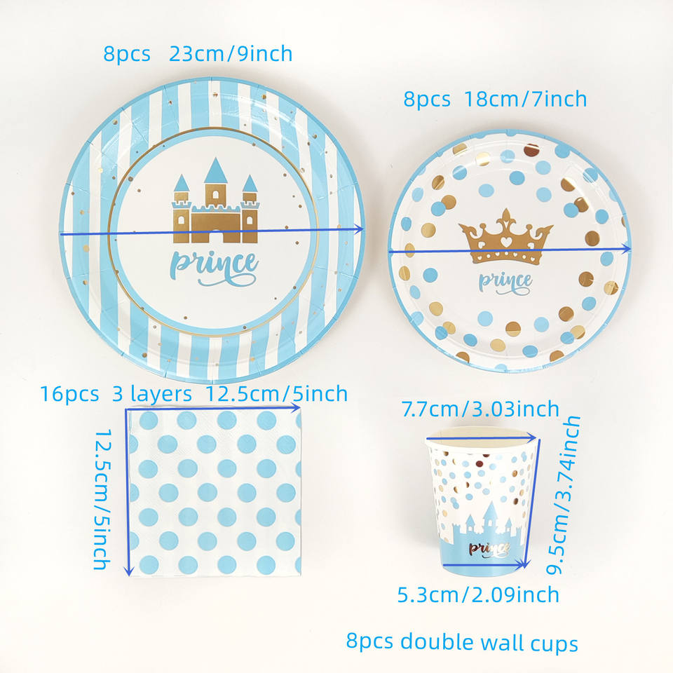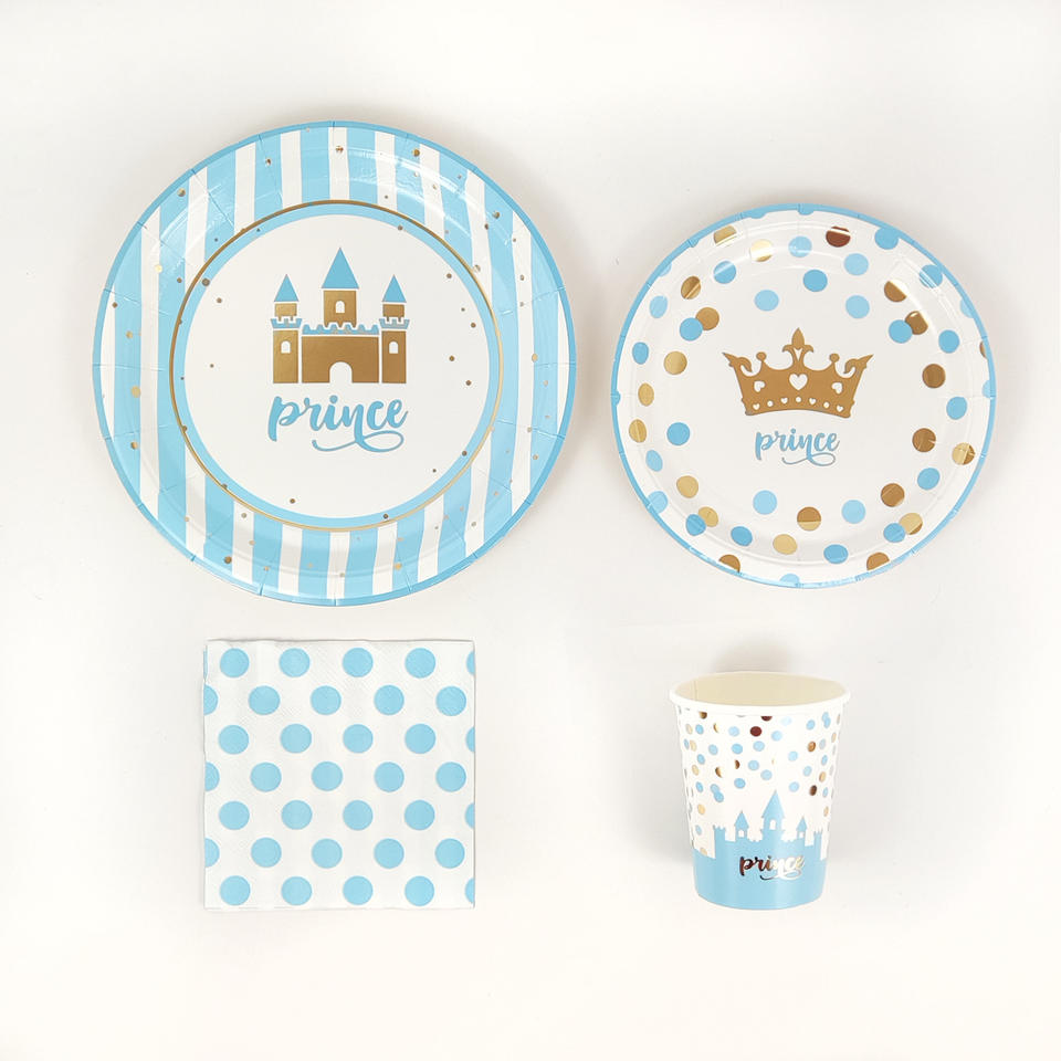 Decoraciones para Fiesta de Cumpleaños de Príncipe DAMAI, Platos, Servilletas y Vasos Desechables, Azul Dorado, Castillo, Corona, Vajilla para Fiesta de Princesa
