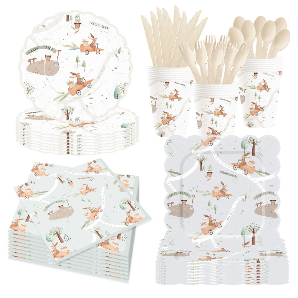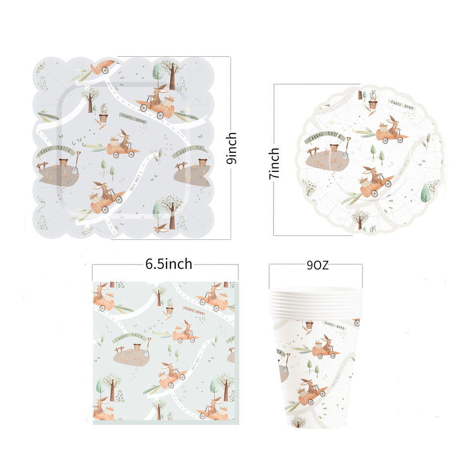 Vajilla para Fiesta de Conejos DAMAI, Artículos para Fiesta de Cumpleaños con Temática de Animales de Granja, Juego de Platos, Servilletas y Vasos para 8 Personas