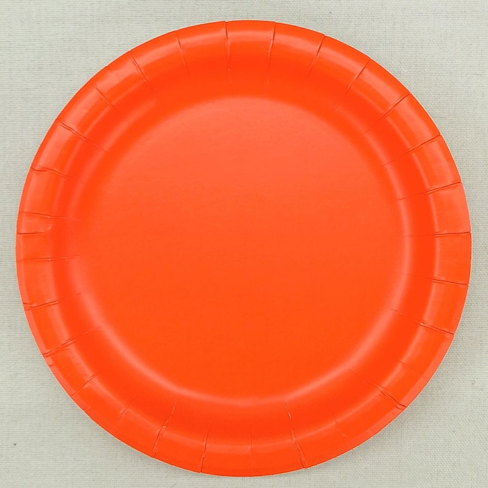 DAMAI - Vajilla Desechable de Papel de Color Sólido Naranja Brillante para Fiestas, Juego de Platos, Vasos y Servilletas de Papel de 9 Pulgadas