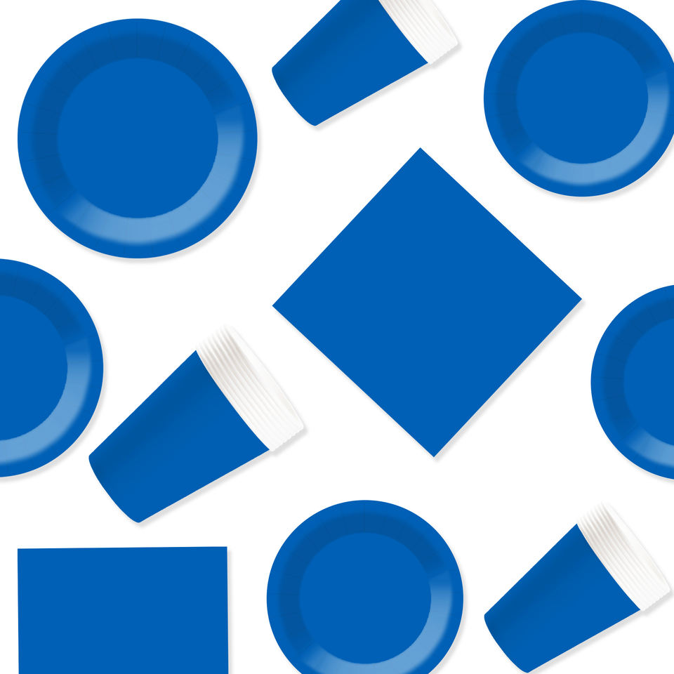 DAMAI - Juego de Vajilla Desechable de Papel Azul Oscuro para Fiestas, Platos de 7 y 9 Pulgadas, Vasos de Papel, Cubiertos y Servilletas