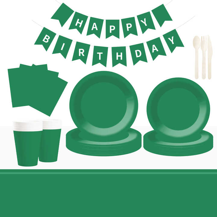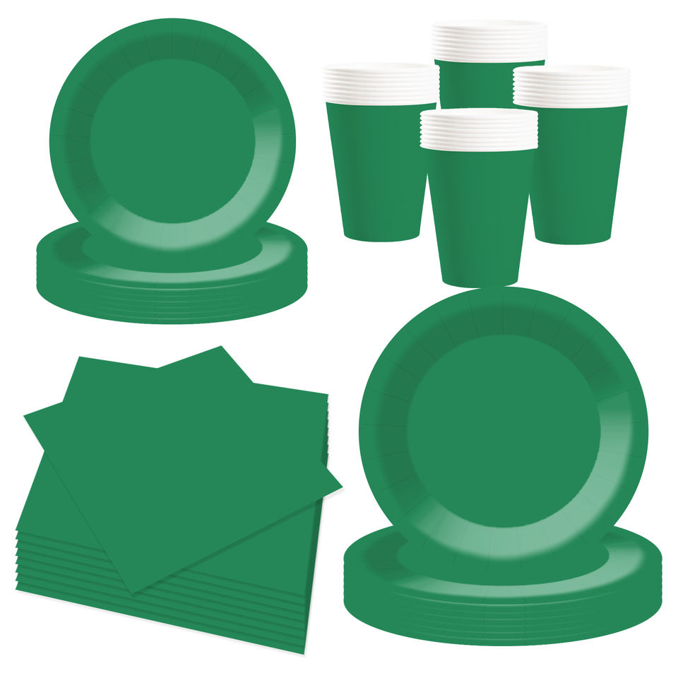 DAMAI - Juego de Vajilla Desechable de Papel Verde para Fiestas, Platos de 7 y 9 Pulgadas, Vasos de Papel y Servilletas