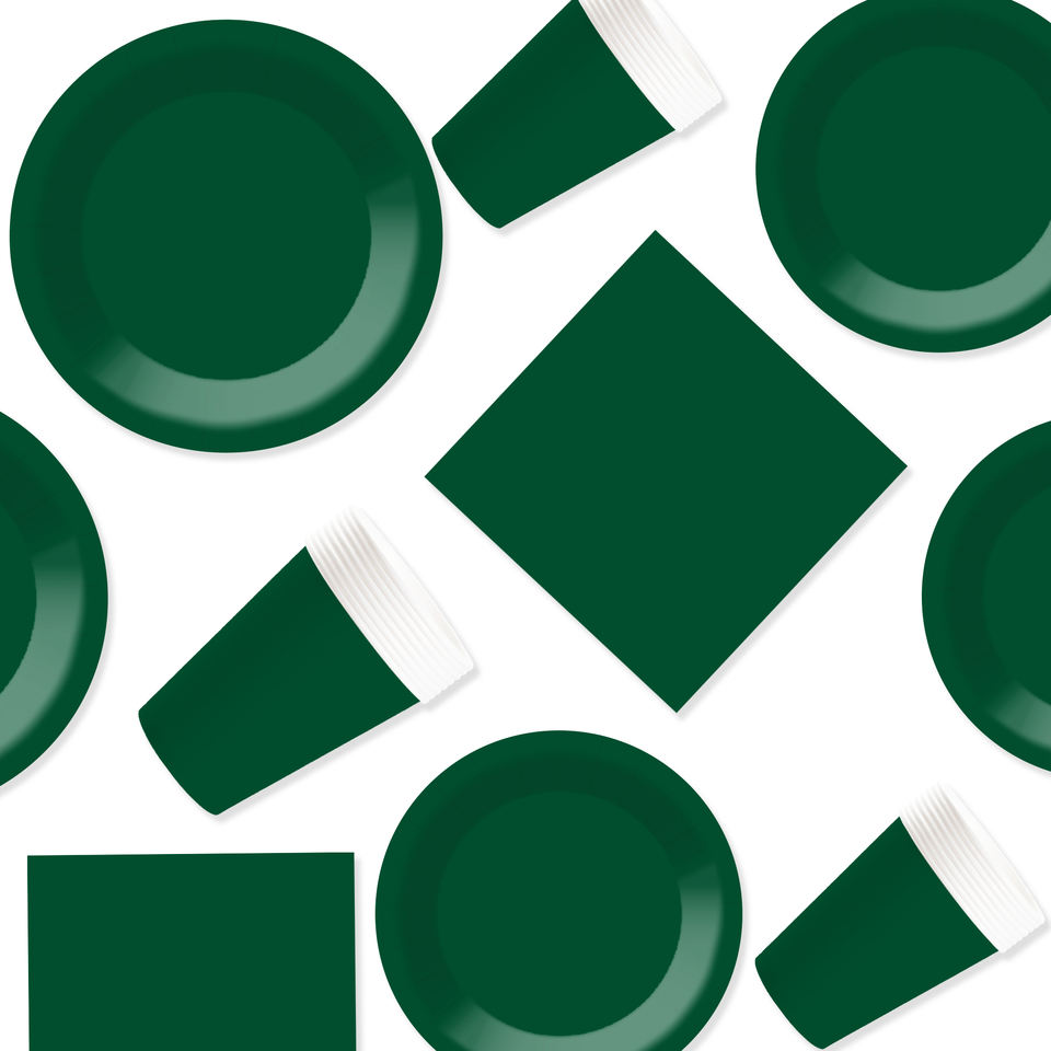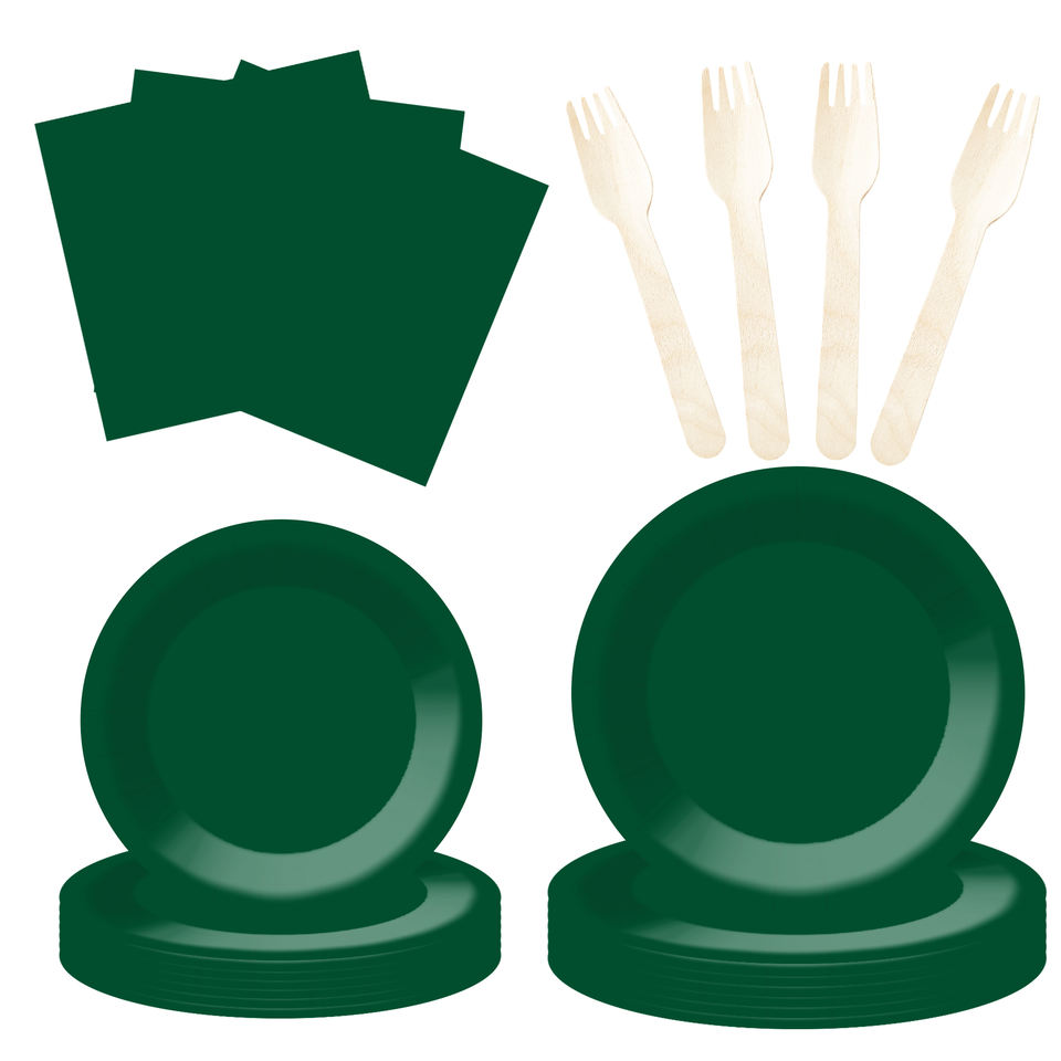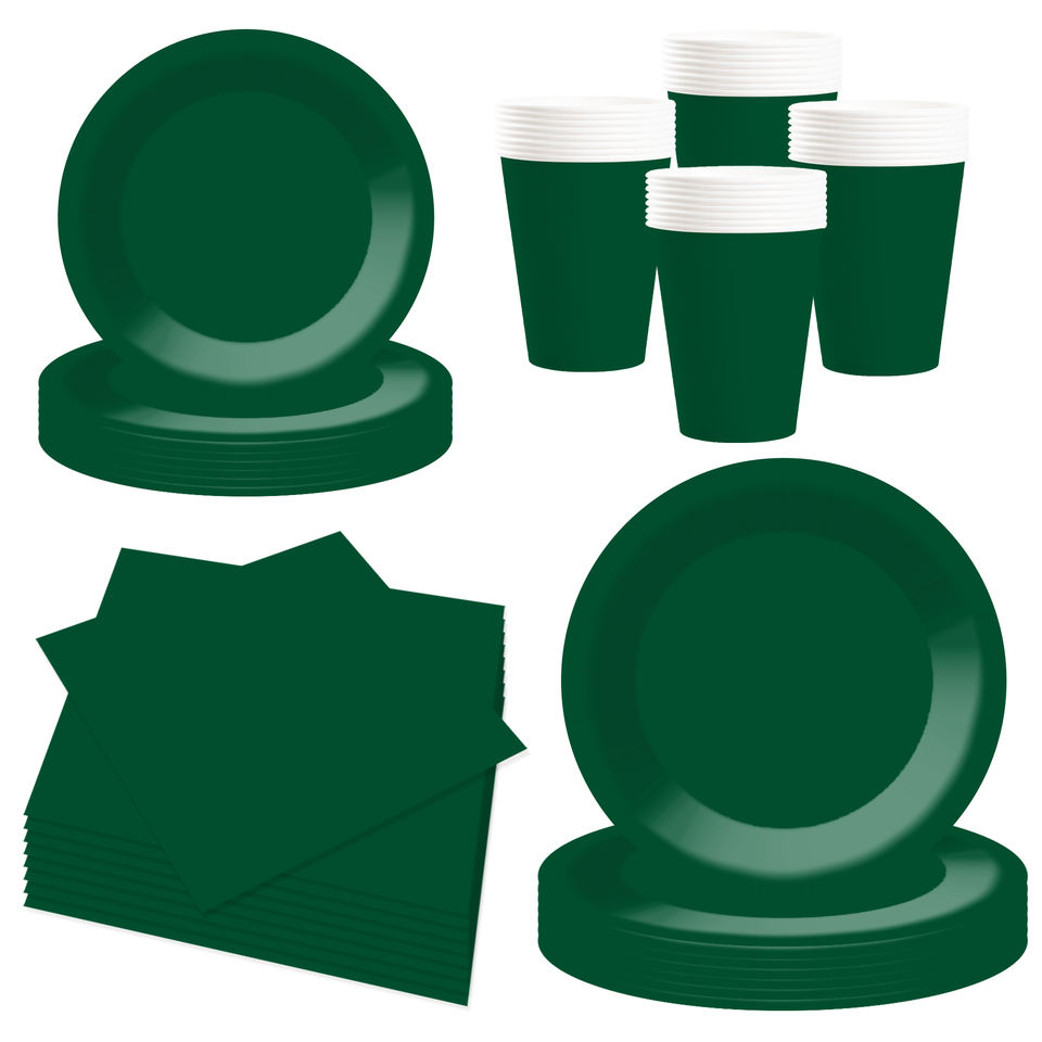 DAMAI - Juego de Vajilla Desechable de Papel Verde para Fiestas, Platos de 7 y 9 Pulgadas, Vasos de Papel y Servilletas