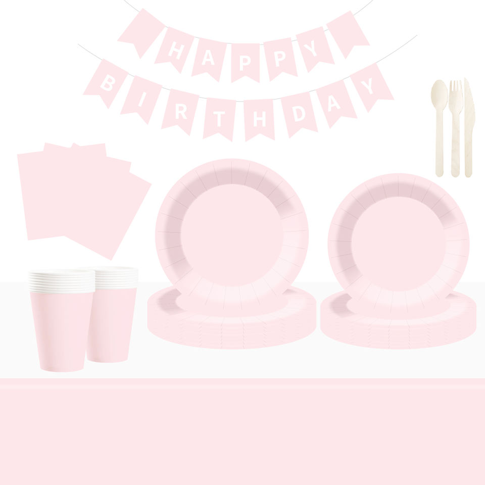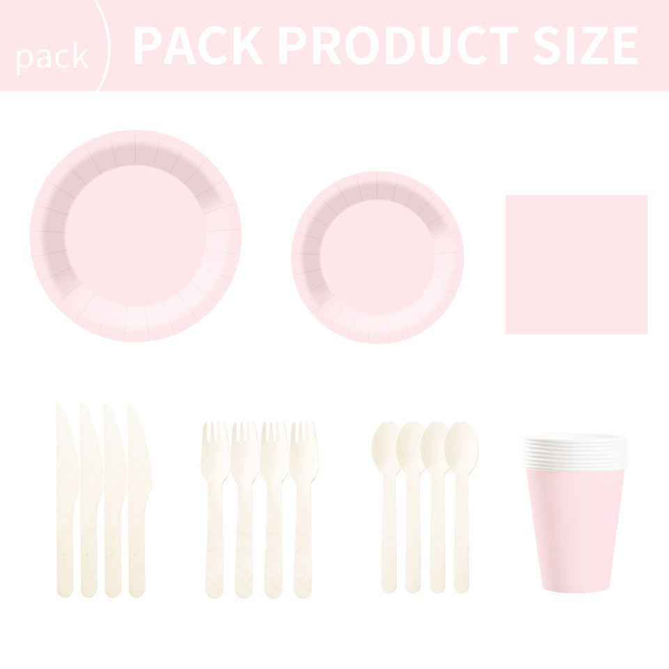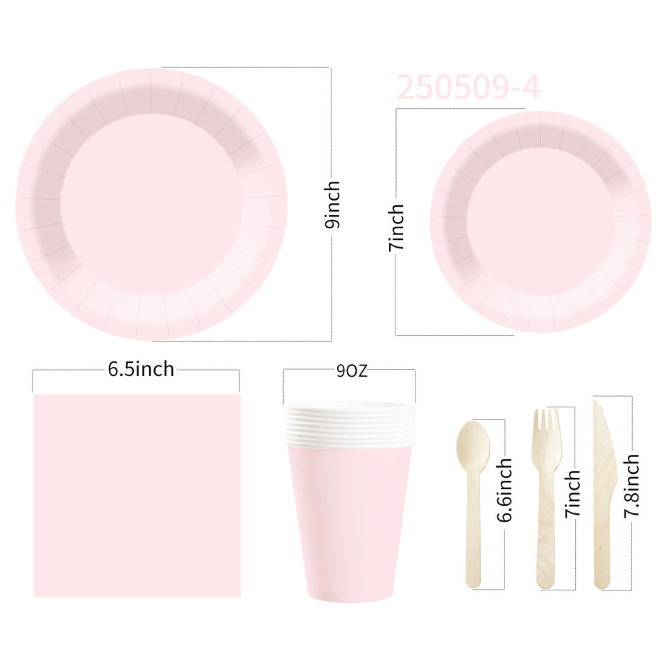 DAMAI - Juego de Vajilla Desechable de Papel de Color Rosa Claro para Fiestas, Platos de 7 y 9 Pulgadas, Vasos de Papel, Cubiertos, Servilletas