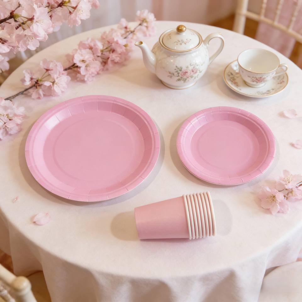 DAMAI - Vajilla de Papel de Color Sólido para Fiestas, Juego de Vajilla Desechable de Color Liso, Platos de 7 y 9 Pulgadas, Vasos de Papel, Servilletas