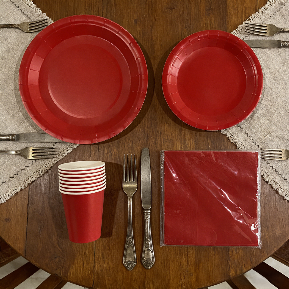 DAMAI - Vajilla de Papel de Color Sólido para Fiestas, Juego de Vajilla Desechable de Color Liso, Platos de 7 y 9 Pulgadas, Vasos de Papel, Servilletas
