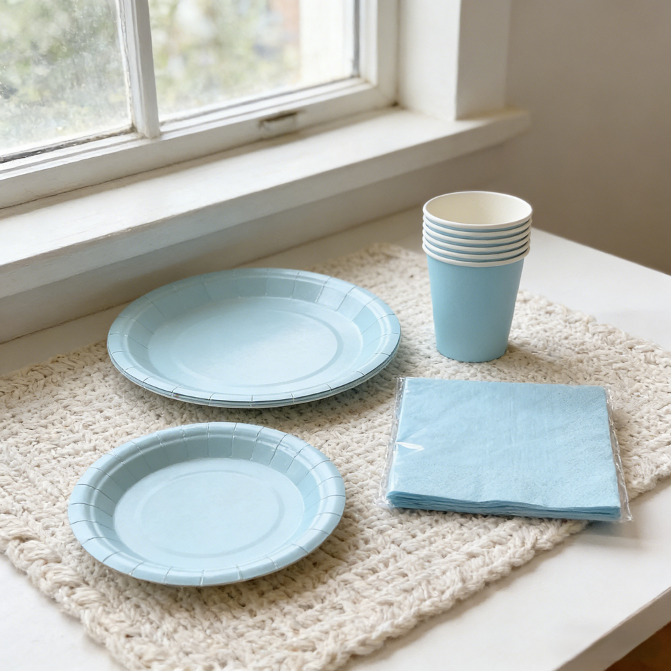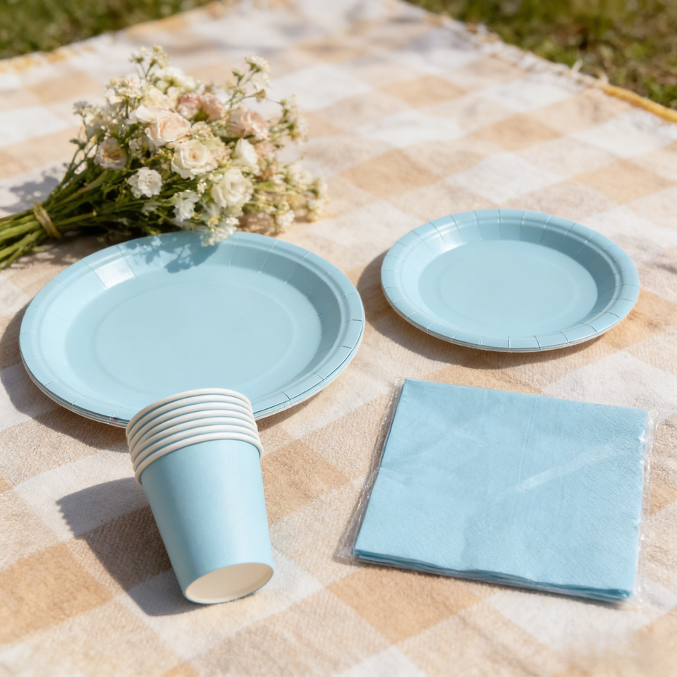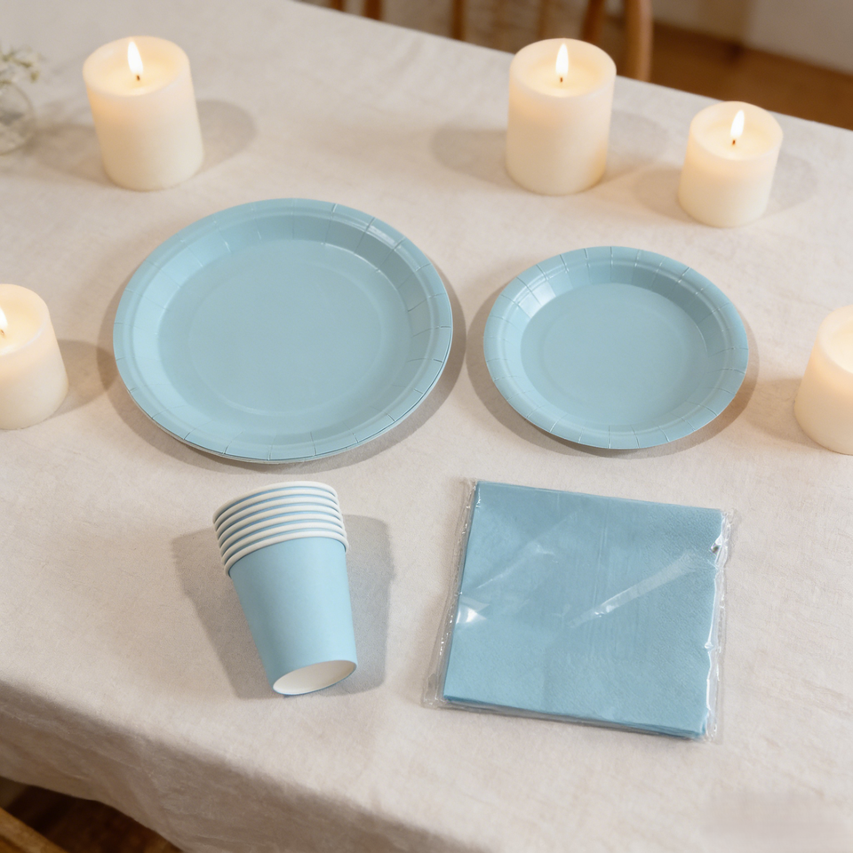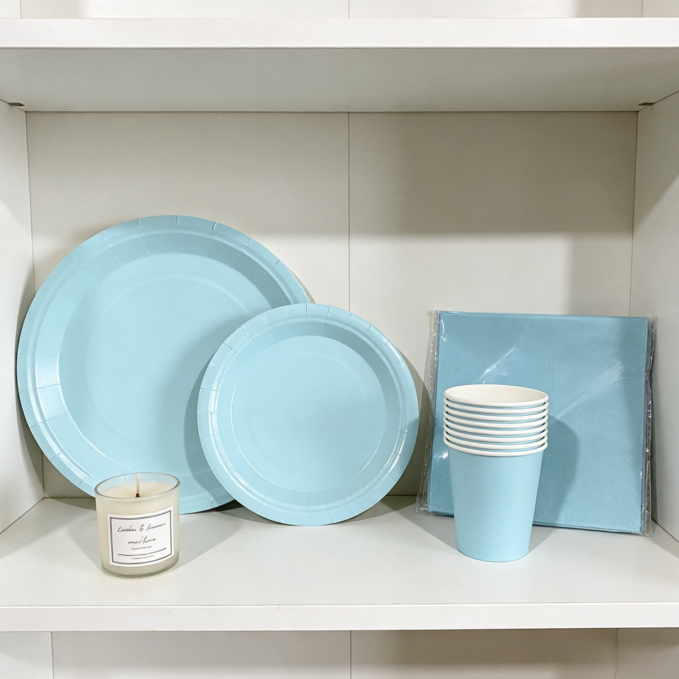 DAMAI - Vajilla de Papel de Color Sólido para Fiestas, Juego de Vajilla Desechable de Color Liso, Platos de 7 y 9 Pulgadas, Vasos de Papel, Servilletas