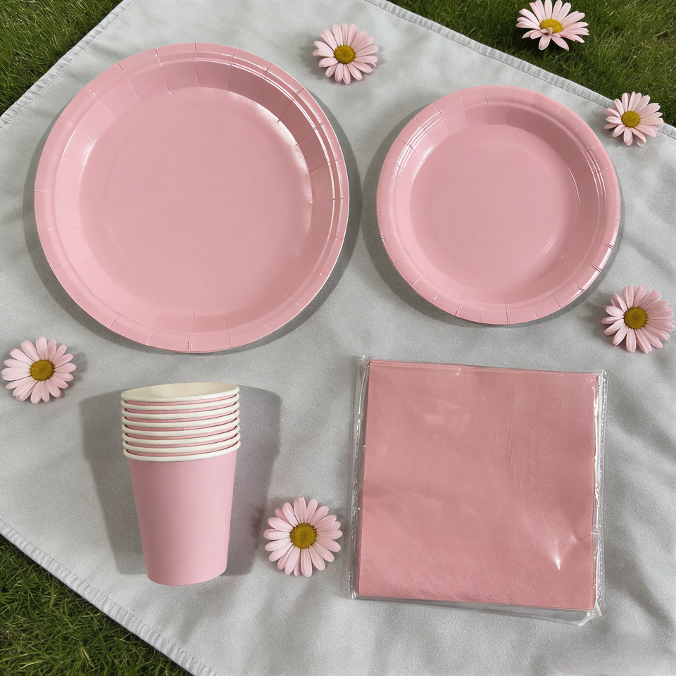 DAMAI - Vajilla de Papel de Color Sólido para Fiestas, Juego de Vajilla Desechable de Color Liso, Platos de 7 y 9 Pulgadas, Vasos de Papel, Servilletas