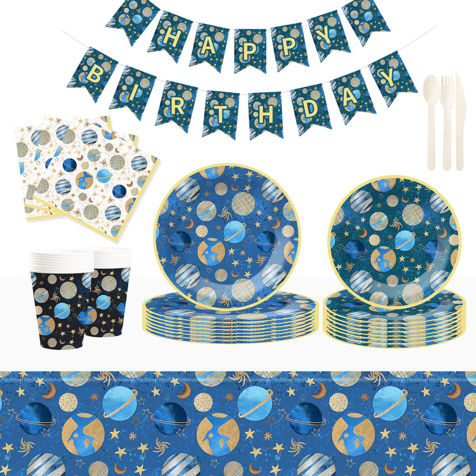 Platos, Vasos y Servilletas Desechables con Diseño Espacial DAMAI, Juego de Vajilla con Temática de Planetas para Fiestas