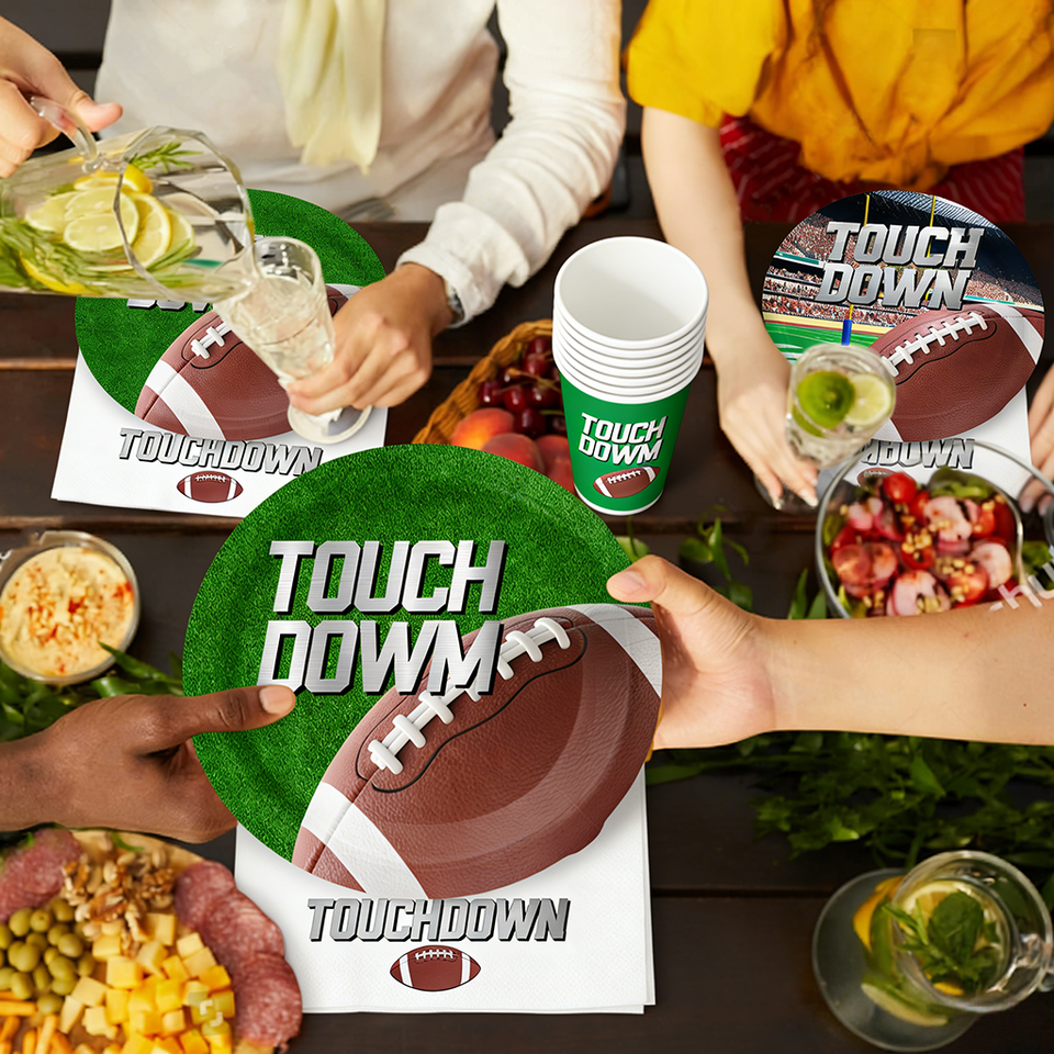Juego de Vajilla Deportiva DAMAI con Elementos de Rugby, Incluye Platos Redondos de Papel, Vasos y Servilletas, para 8 Personas