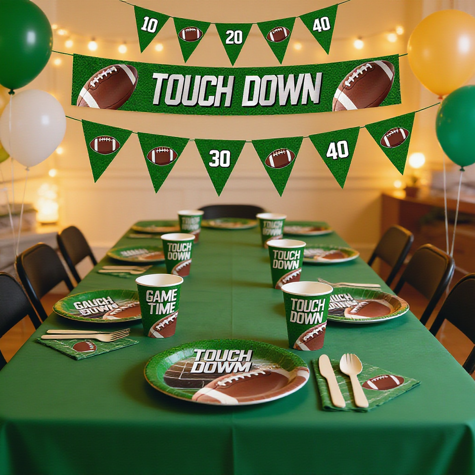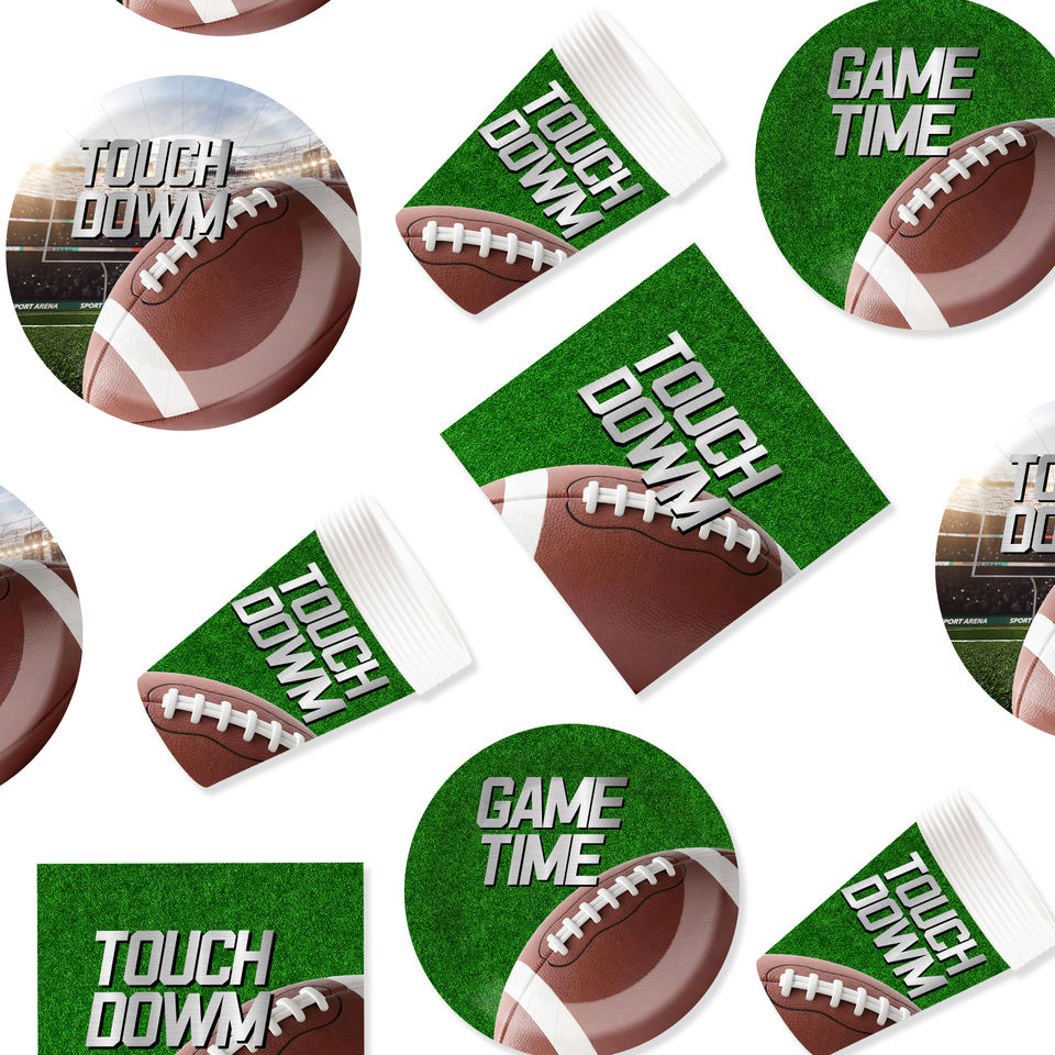 Juego de Vajilla Deportiva DAMAI con Elementos de Rugby, Incluye Platos Redondos de Papel, Vasos y Servilletas, para 8 Personas