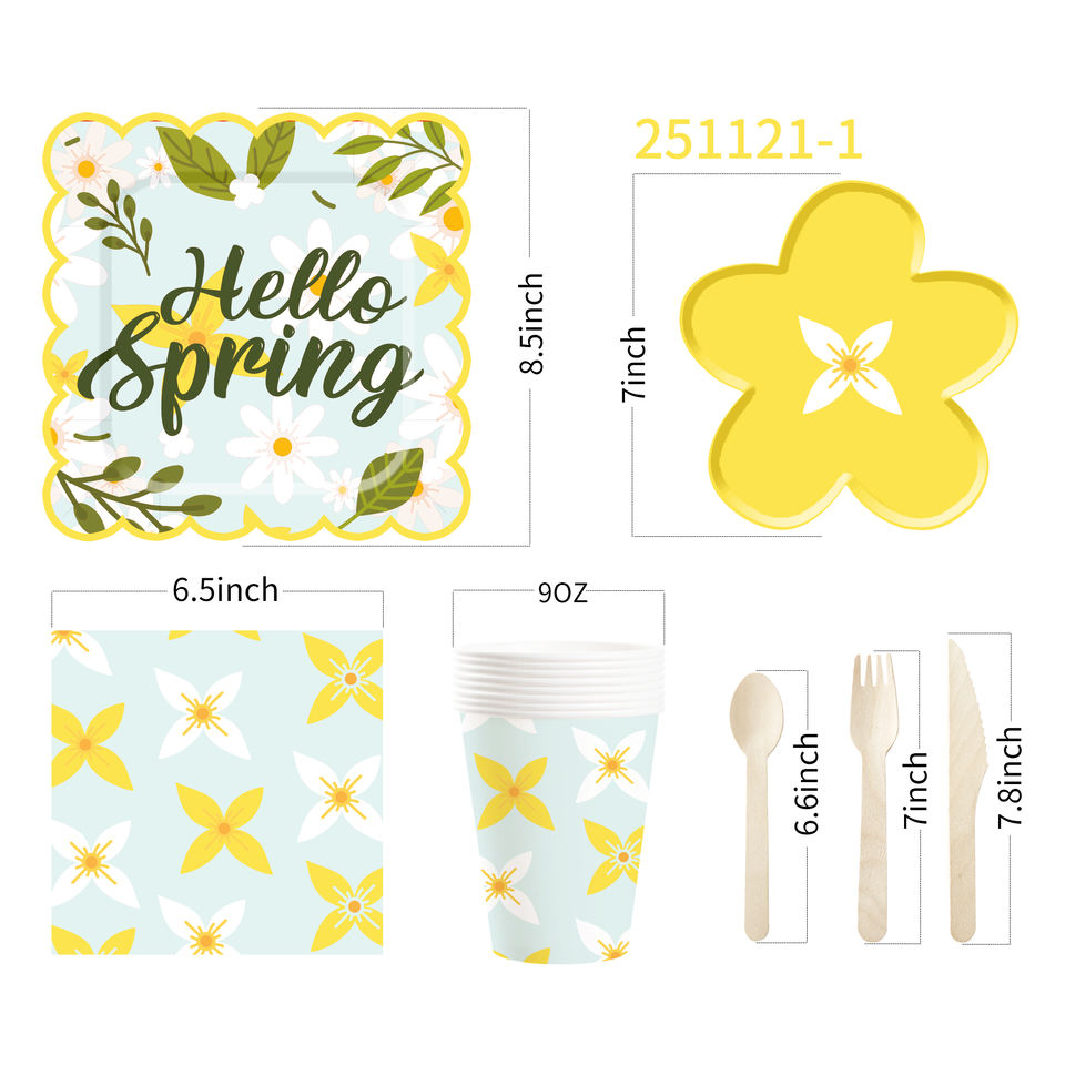 Platos de Papel para Fiesta DAMAI, Platos Desechables con Diseño Floral para Fiestas de Niñas, Bodas, Despedidas de Soltera, Fiestas de Té, Suministros para 8 Personas