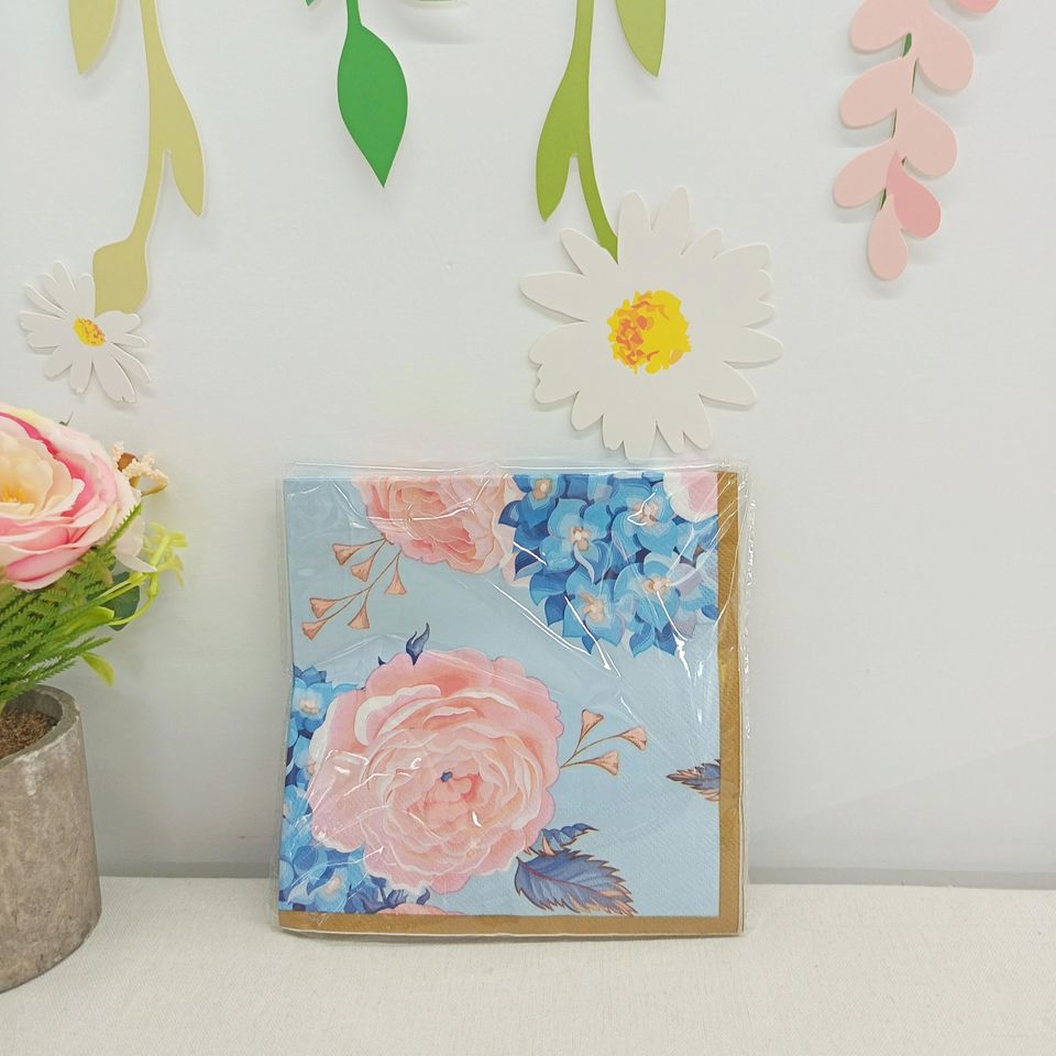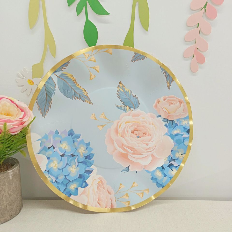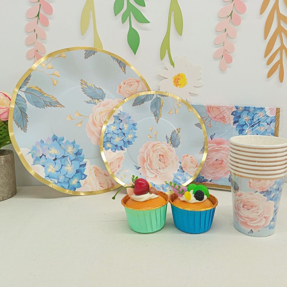 DAMAI - Vajilla Desechable con Diseño Floral para Fiestas de Niñas, Platos con Hortensias Azules y Rosas Rojas, Vasos de Papel y Servilletas