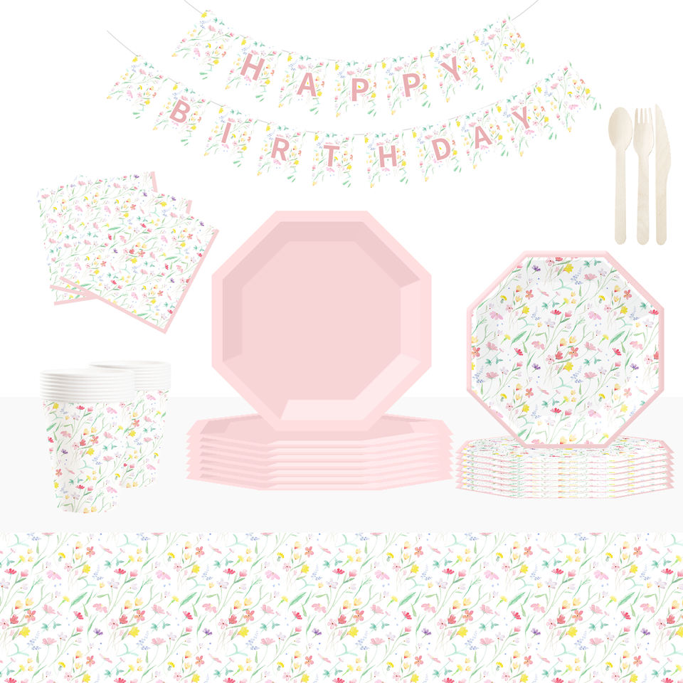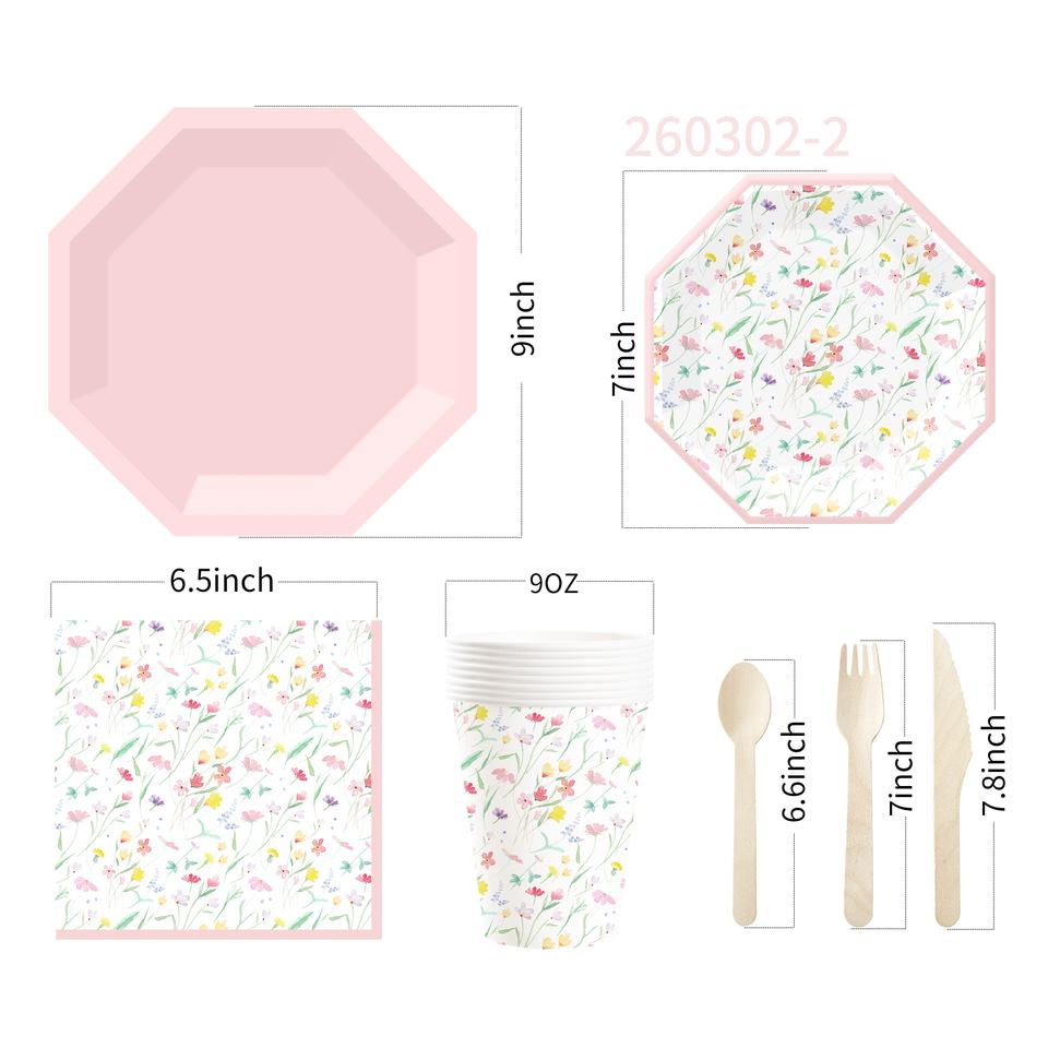 Decoración para Fiesta de Té de Primavera DAMAI, Regalos para Niñas, Plato Rosa con Diseño Floral, Vajilla Desechable, Servilletas de Papel, Vasos, Platos