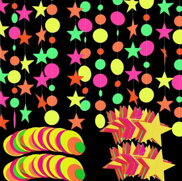 Guirnalda de Papel Estrellado DAMAI, Serpentinas de Neón, Decoración con Luz Negra, Artículos para Fiestas con Efecto Luminoso, Suministros para Bodas y Cumpleaños