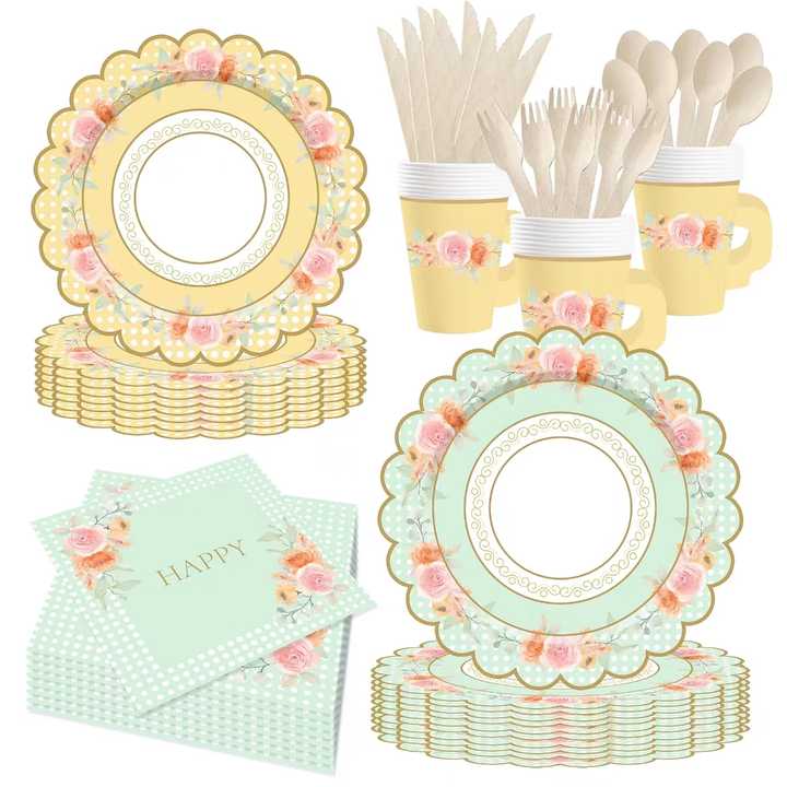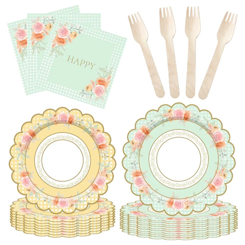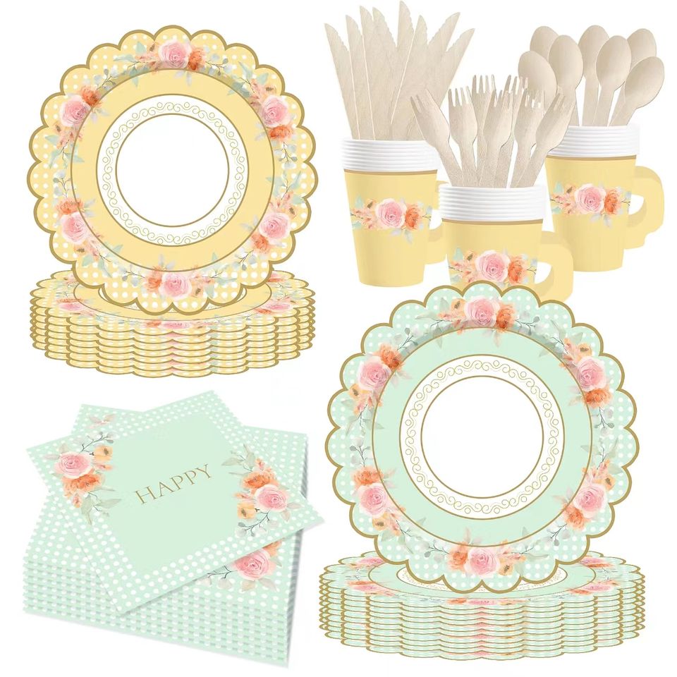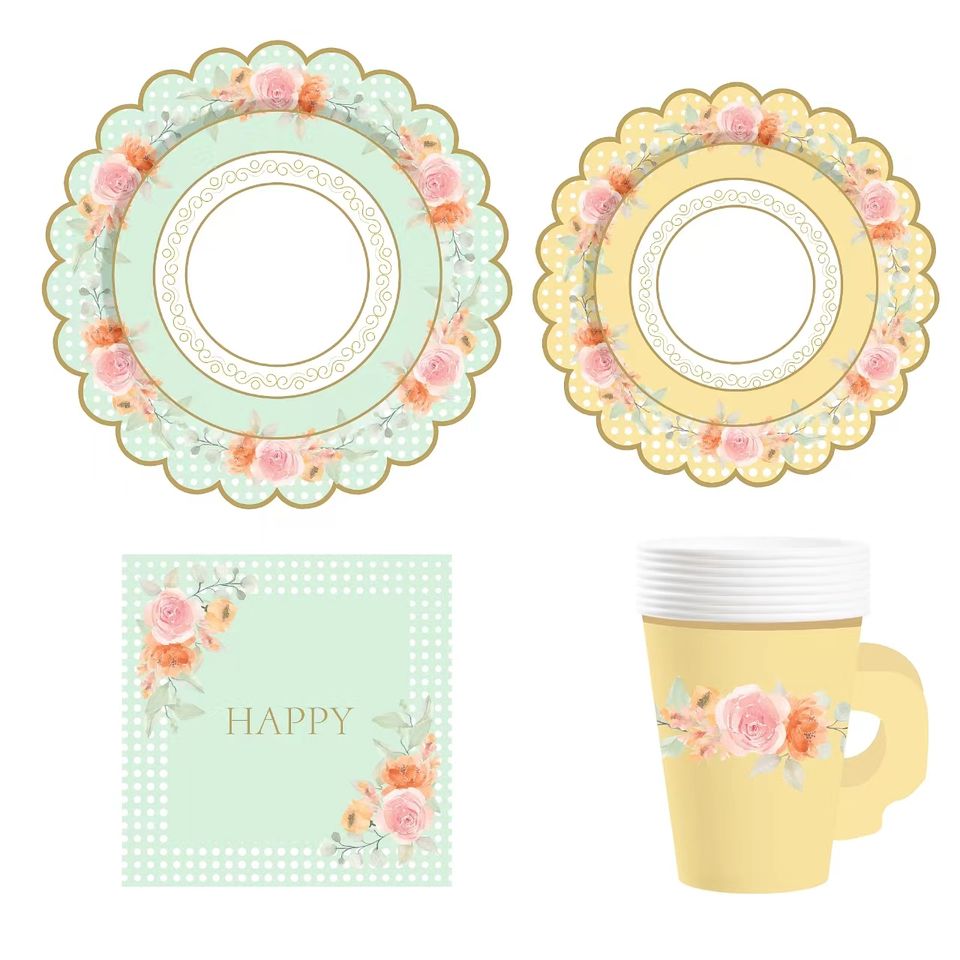 Juego de Tazas, Platos y Servilletas de Papel DAMAI para Fiesta de Té, con Asas, para Decoración de Cumpleaños, Princesa, Baby Shower Floral