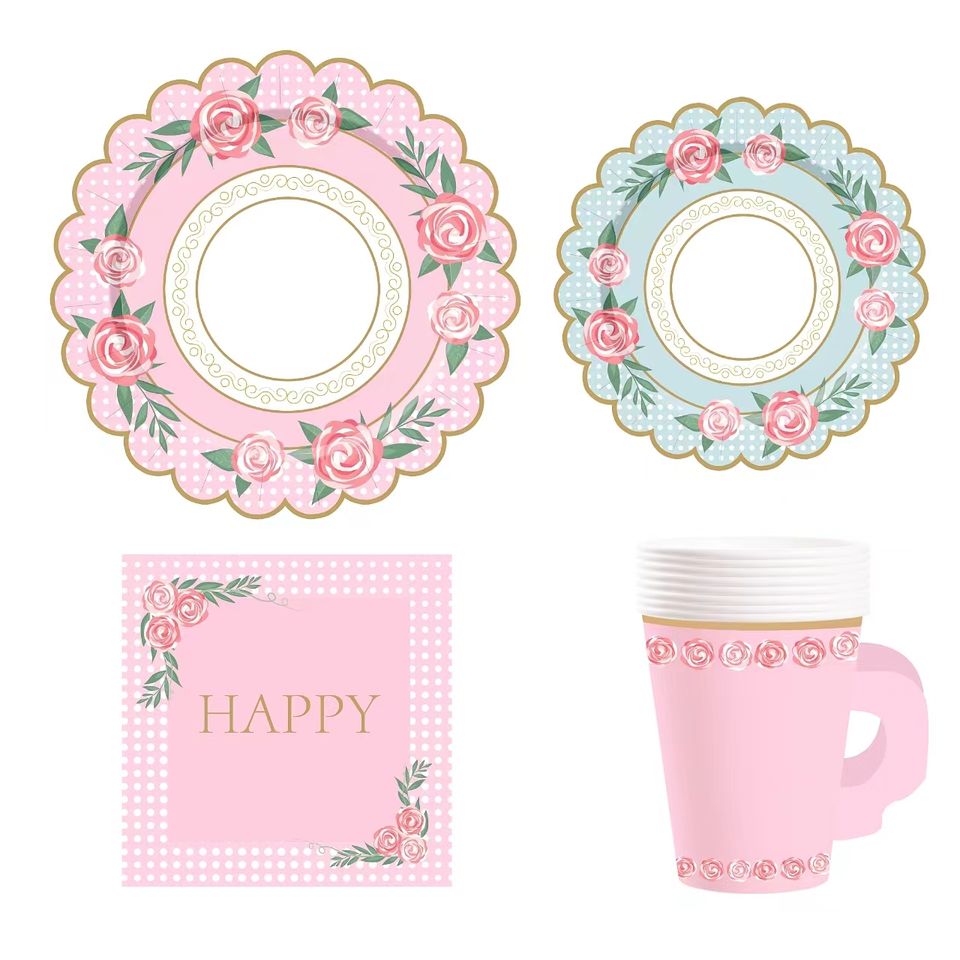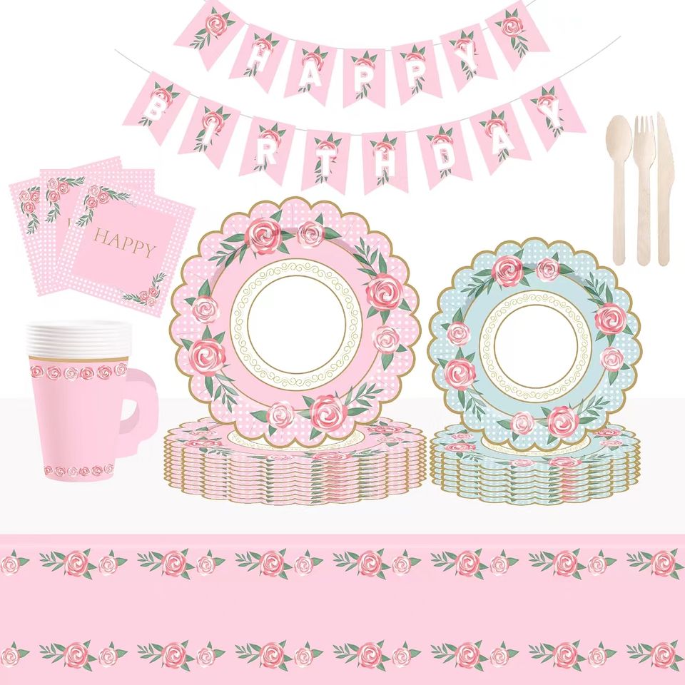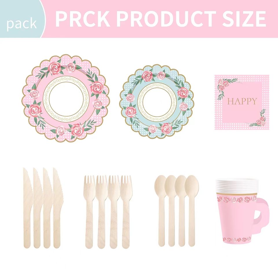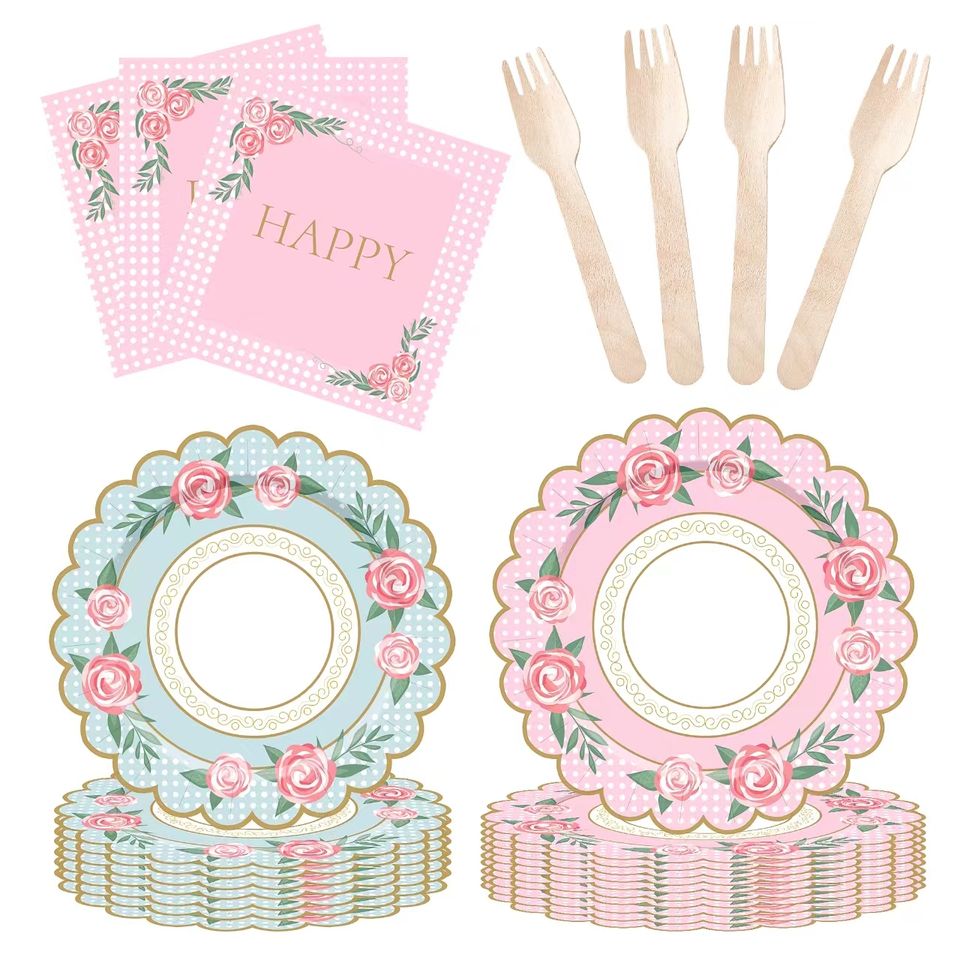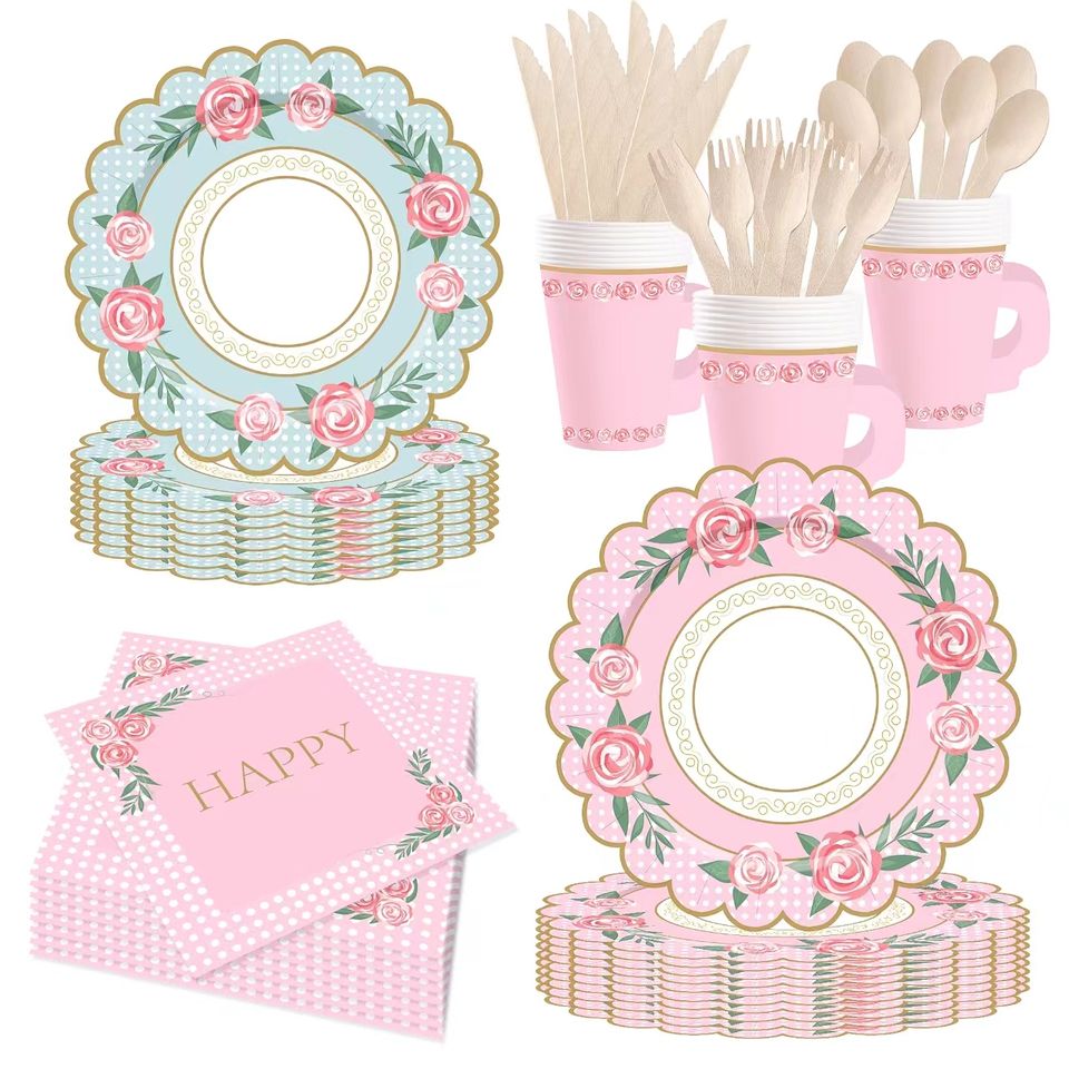 Juego de Tazas, Platos y Servilletas de Papel DAMAI para Fiesta de Té, con Asas, para Decoración de Cumpleaños, Princesa, Baby Shower Floral