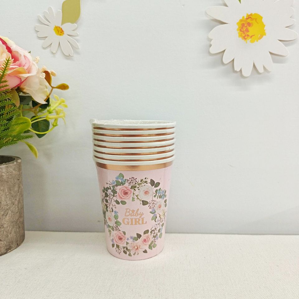 Decoraciones para Fiesta de Té DAMAI, Artículos Florales para Fiesta, Vajilla Desechable, Platos de Papel con Borde Ondulado, Platos de Papel con Flores Blancas, Vasos, Servilletas