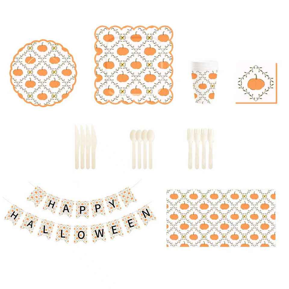 Juego de Platos y Servilletas de Papel para Fiesta de Acción de Gracias DAMAI, Kit de Vajilla Desechable con Decoraciones a Cuadros para 8 Personas
