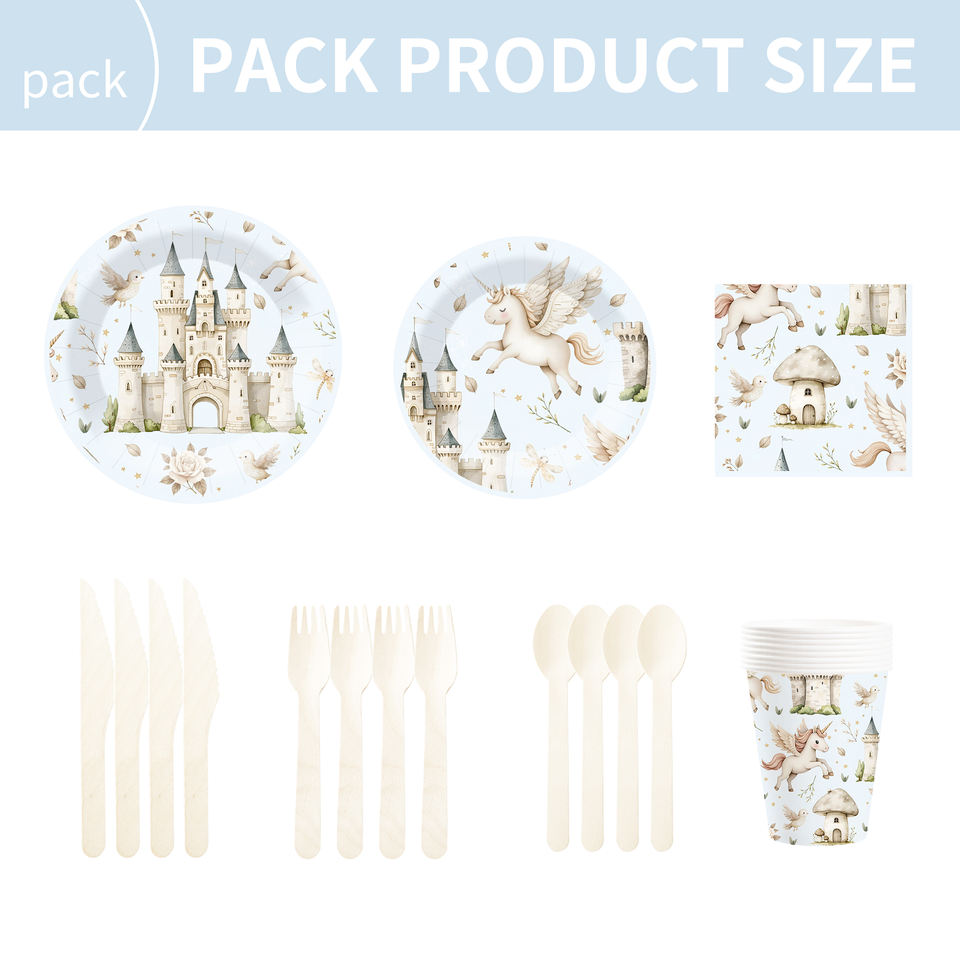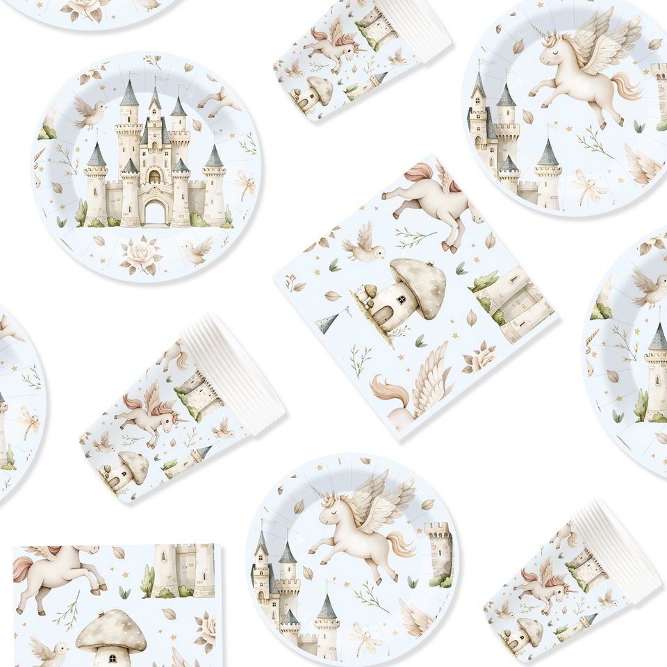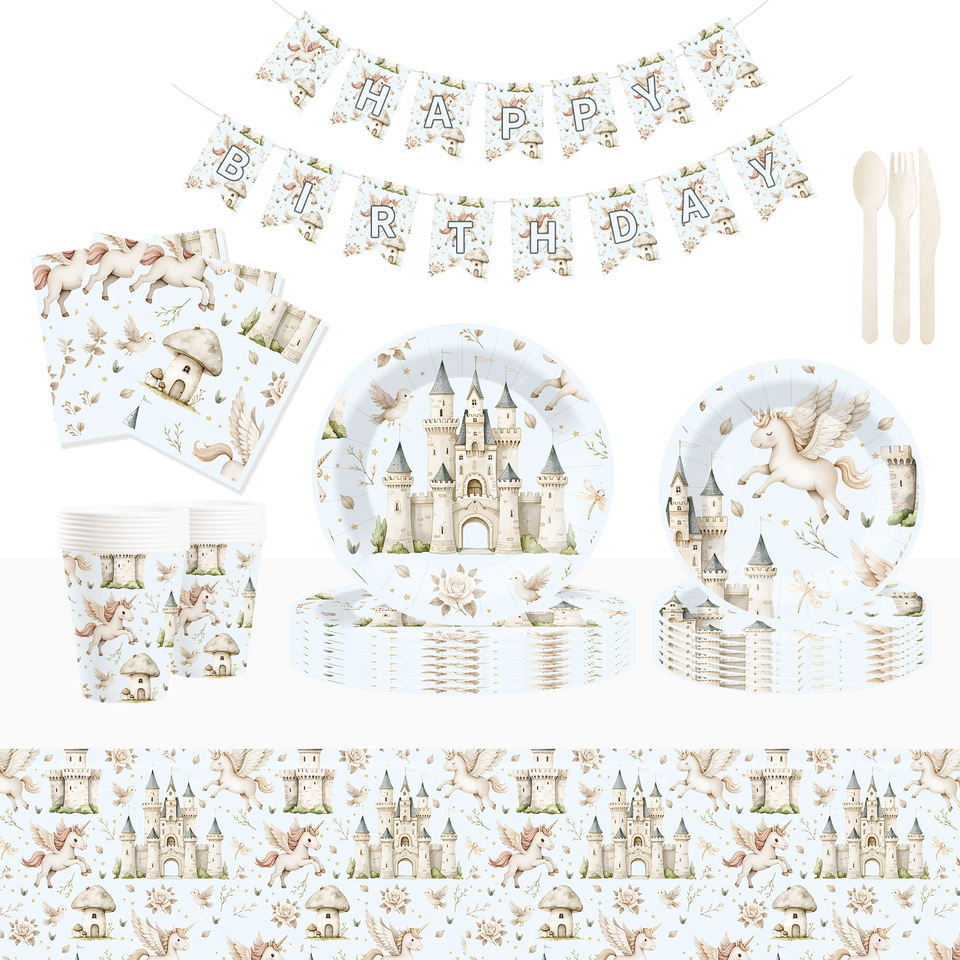 Juego de Vajilla de Cumpleaños de Unicornio DAMAI, Plato de Papel con Elementos de Castillo de Unicornio, Vasos de Papel, Servilletas para Niños, Fiesta de Cumpleaños Infantil