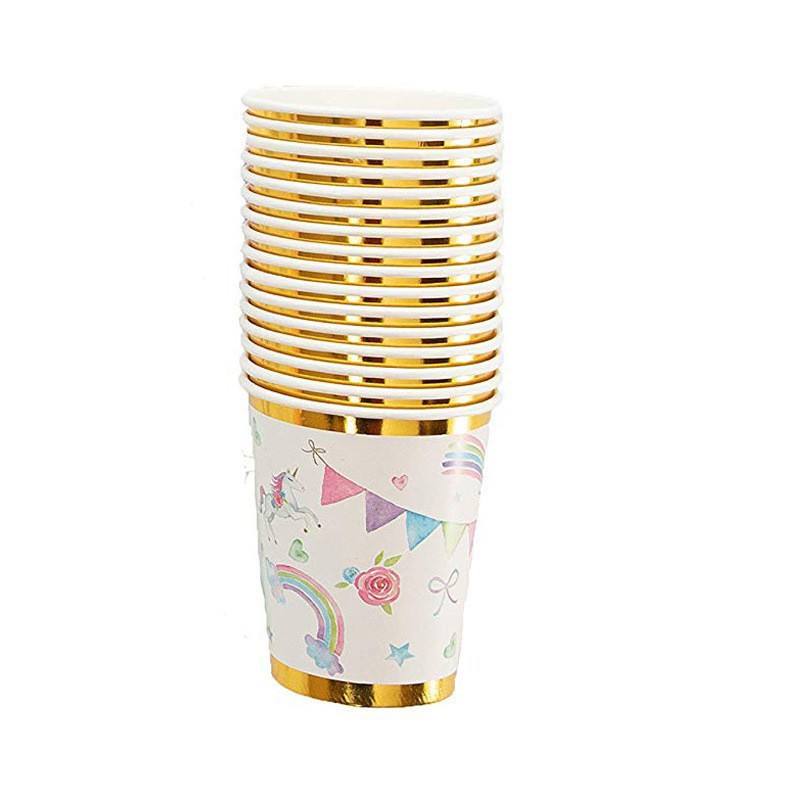 Juego de Vajilla de Cumpleaños de Unicornio DAMAI, Decoraciones con Lámina Dorada, Platos, Servilletas, Vasos y Pancarta para Fiesta de Cumpleaños de Niña