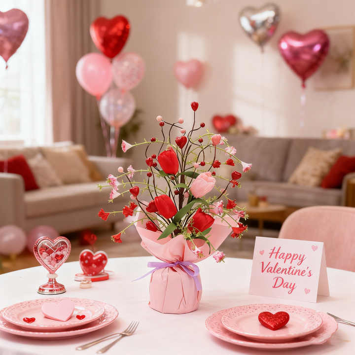 DAMAI Arreglo Floral de Tulipanes para el Día de San Valentín, Mini Árbol de Tulipanes de Escritorio, Ramo de Tulipanes de Primavera para Decoración Romántica de Mesa en Bodas y Fiestas