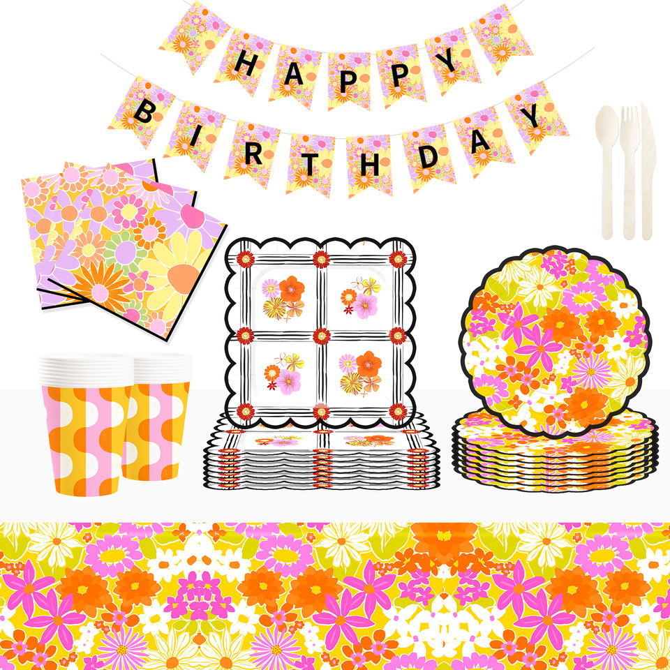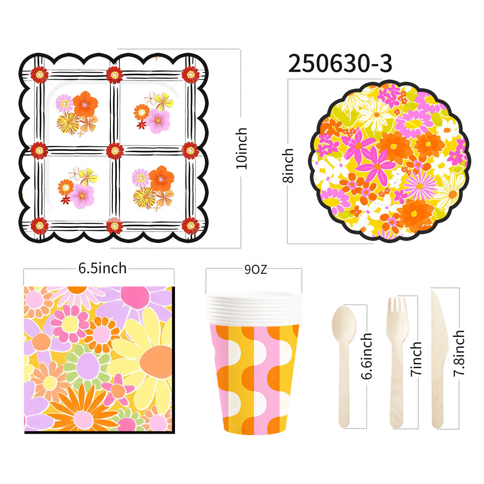 DAMAI - Juego de Vajilla Desechable con Diseño de Flores Silvestres para Fiestas, Platos de Papel, Vasos de Papel, Servilletas para Bodas