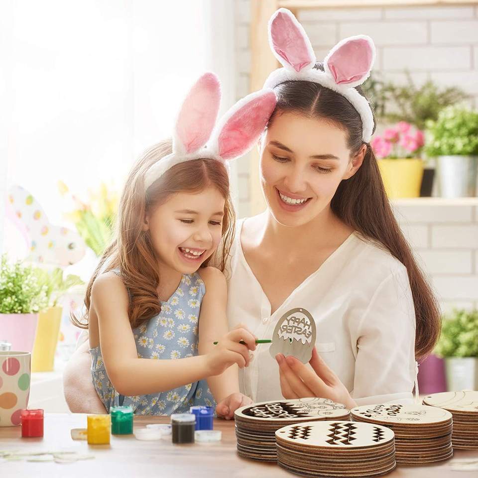 Decoraciones Colgantes de Madera DAMAI, Adornos de Madera para Colorear DIY, Pollo, Conejo, Huevos de Pascua, Colgante de Madera, Decoración para Fiestas y Hogar