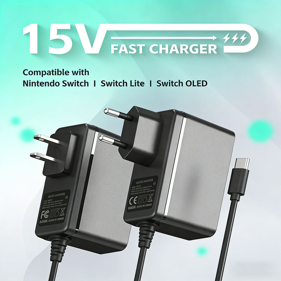 Cargador de CA con Enchufe Europeo DATA FROG, 15V USB C, Carga Rápida, para Nintendo Switch Oled Lite, Accesorios para Juegos Móviles