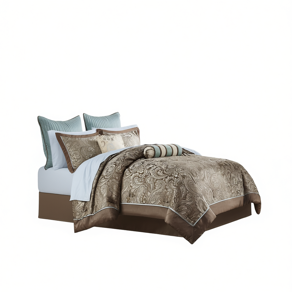 Juego de Edredón de 12 Piezas, Algodón Jacquard con Diseño Paisley, Ropa de Cama para Uso Doméstico, Juego de Sábanas y Funda de Edredón para Todas las Temporadas