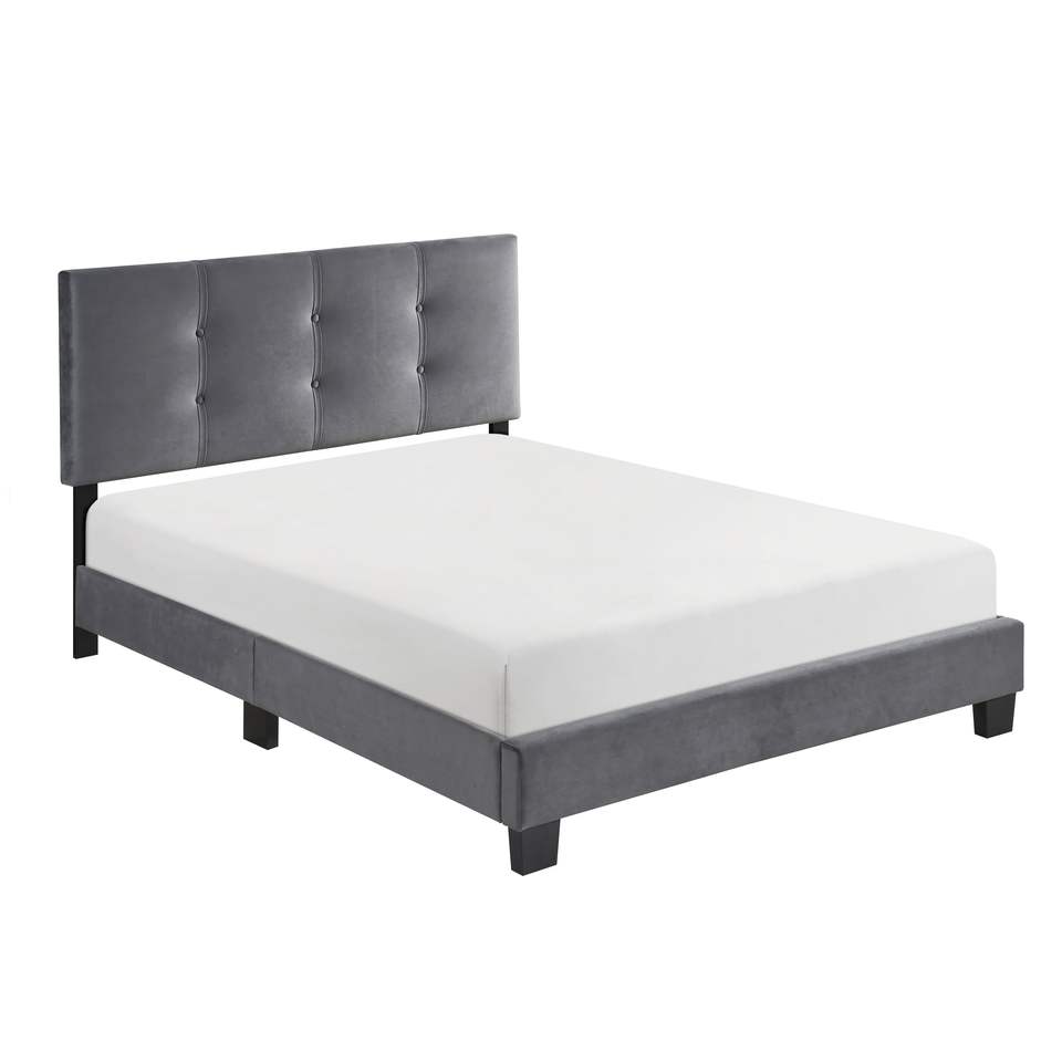DB, 1 pieza, cama de plataforma completa, terciopelo gris oscuro tapizado, altura ajustable, botón de cabecero, muebles de dormitorio de madera maciza con mechones