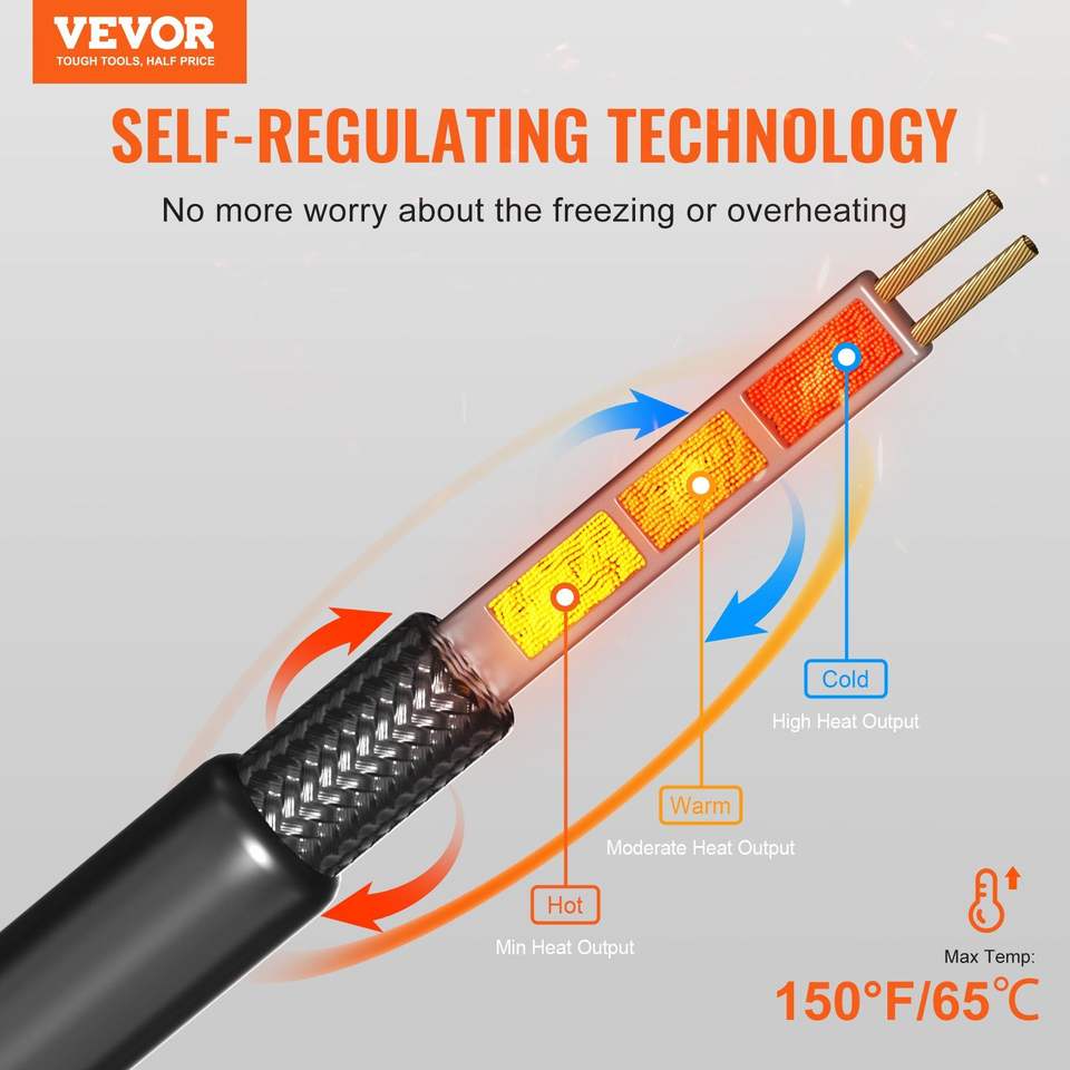 Cable calefactor de tubería autorregulable DB 24FT Cable de control de cinta de calor de 5W/FT para tuberías de techo