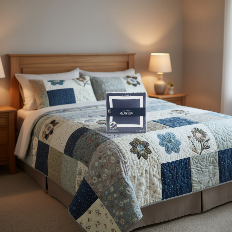Juego de Cubrecamas Reversibles de 3 Piezas DB, Tamaño Individual y Queen, Algodón y Poliéster, Diseño Floral con Parches, para Uso en Dormitorios en Invierno