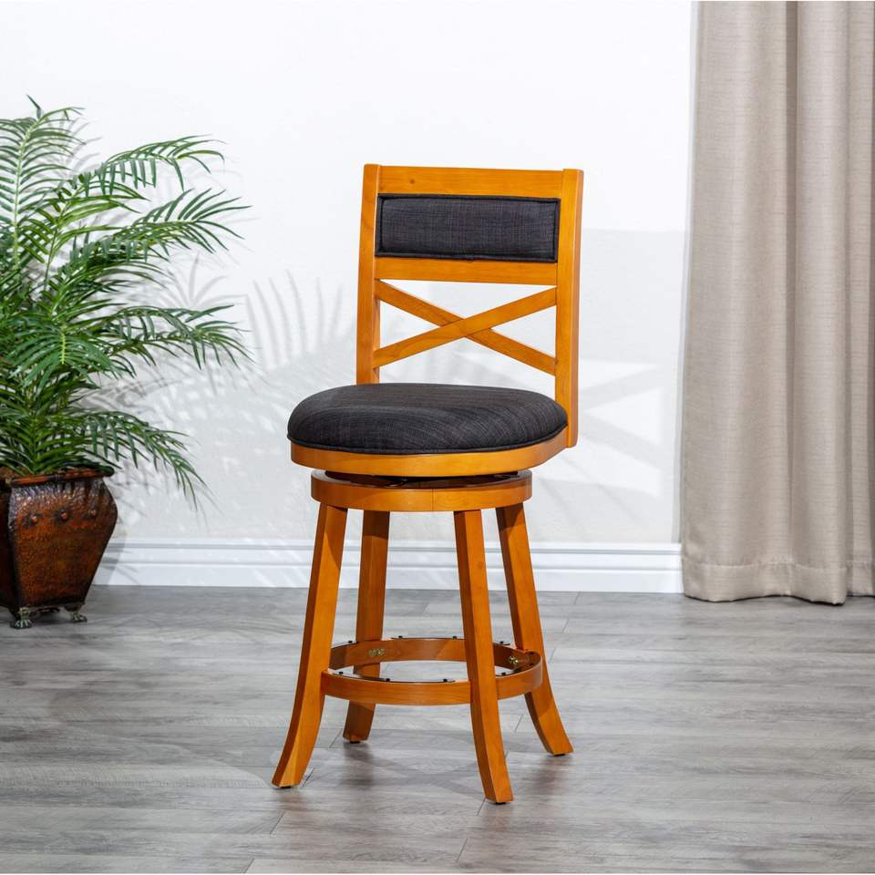 Taburete de Bar alto DB de 30 pulgadas, diseño giratorio con respaldo X y marco de madera maciza de estilo moderno contemporáneo, acabado natural, tela de carbón Se