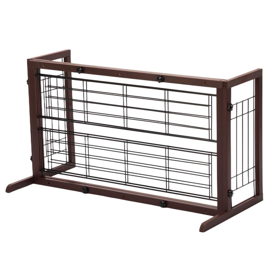 DB 38 "-71" Puerta de madera para mascotas de color marrón oscuro ajustable para perros y gatos Valla de perro independiente segura para interiores para puertas Escaleras para pájaros