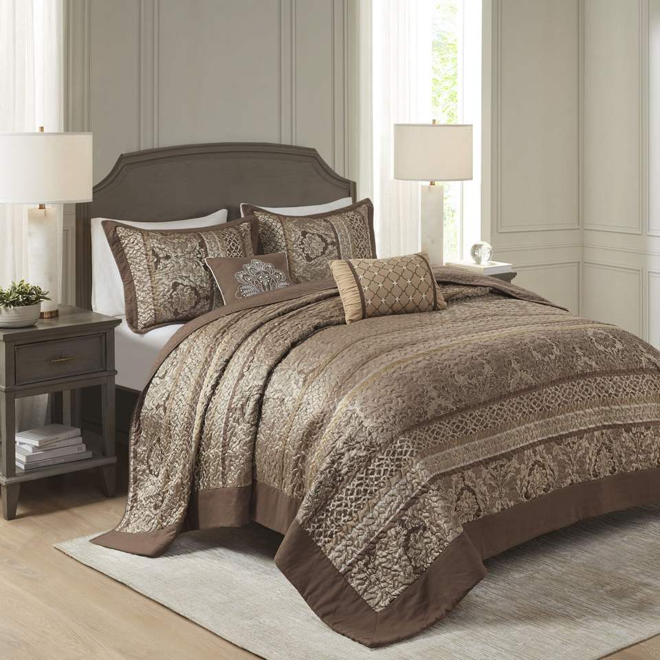 Juego de colcha de jacquard reversible de 5 piezas DB Colección de ropa de cama Premium