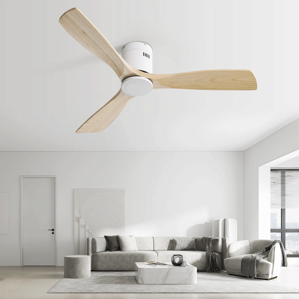 Ventilador de techo DB de 52 pulgadas con 3 aspas, motor de corriente continua reversible y control remoto para sala de estar