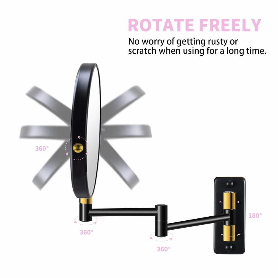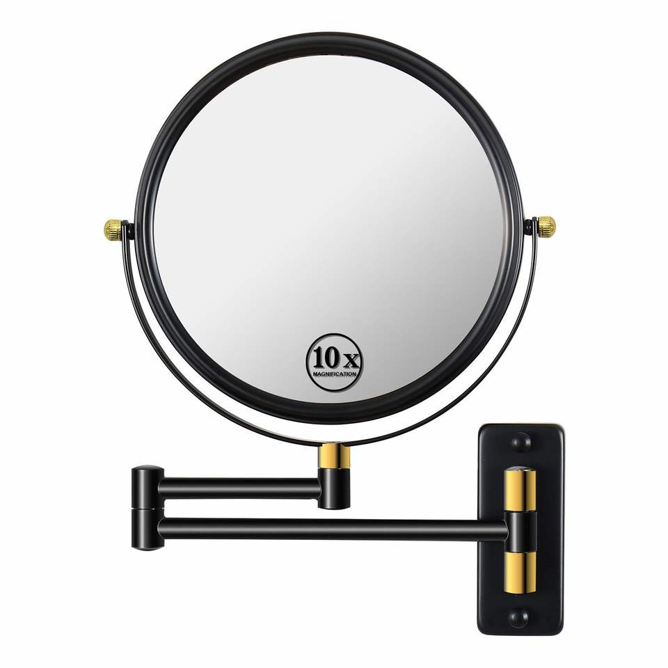 Espejo de Maquillaje de Pared DB de 8 Pulgadas, Redondo, de Doble Cara, con Aumento de 1X y 10X, con Brazo Extensible