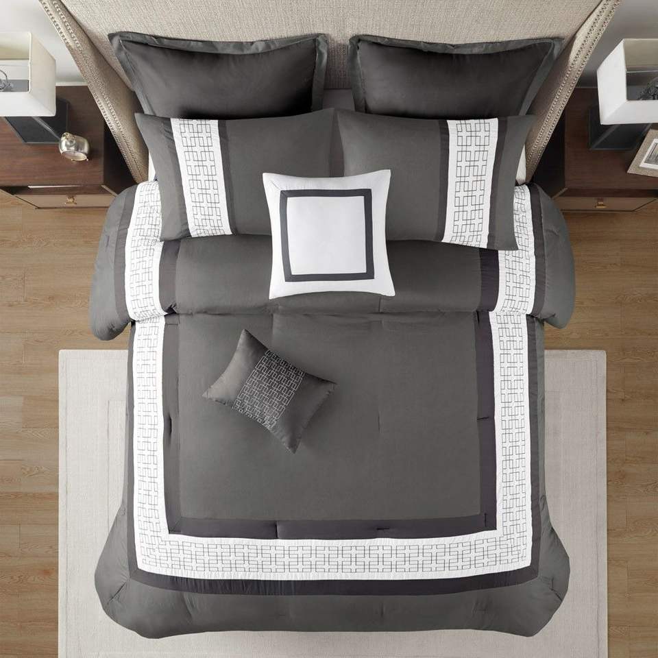 Juego de edredón bordado de 8 piezas DB, tejido gris oscuro Queen Technics, algodón liso para el hogar, Hospital, Hotel, dormitorio