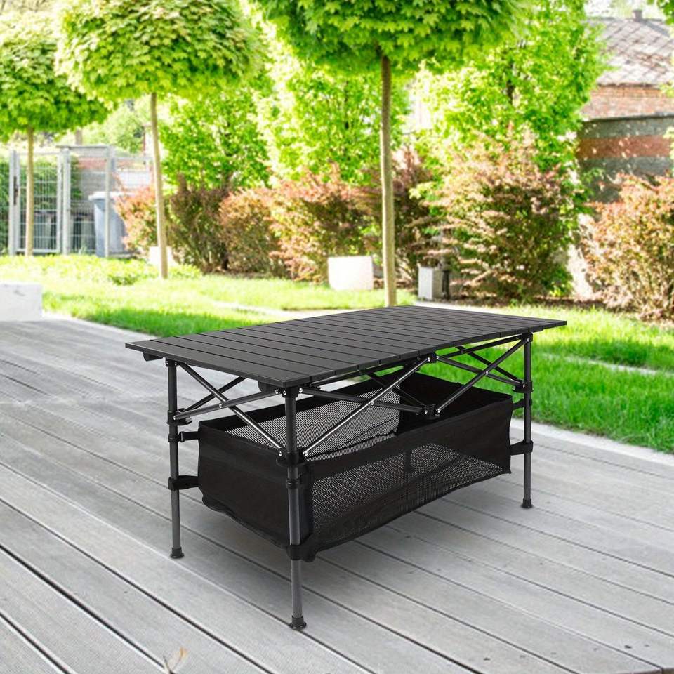 Mesa plegable de altura ajustable DB con bolsa de almacenamiento de base de trípode de metal duradero para uso de muebles al aire libre-Picnics en la playa BBQ & Pati