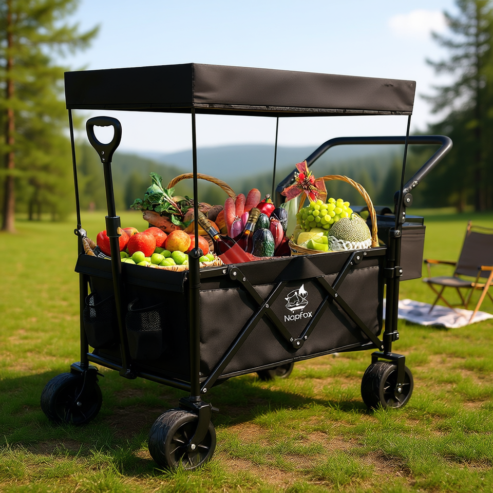 Carrito Plegable NapFox de 140L, Carrito de Compras Todoterreno con Toldo Extraíble