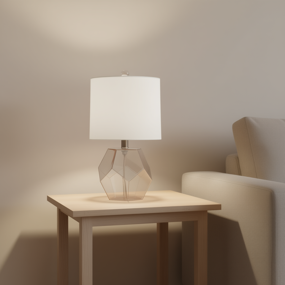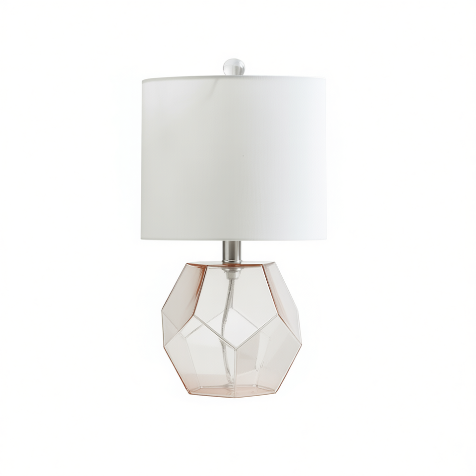 Lámpara de Mesa Geométrica de Vidrio DB Bella, 4100K, Blanco Neutro, Pantalla de Cúpula, Diseño Europeo Moderno, Iluminación para Dormitorio