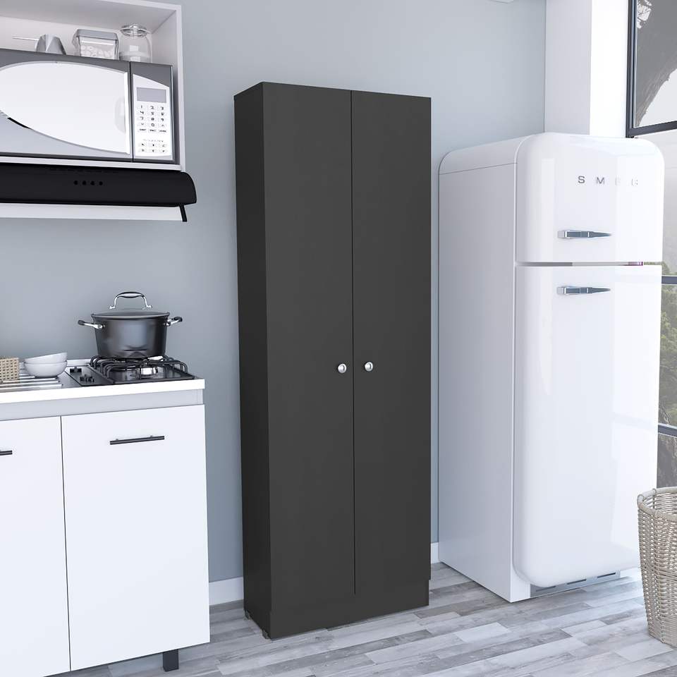 Gabinete de despensa de doble puerta negro DB con cinco estantes para almacenamiento de cocina multialmacenamiento
